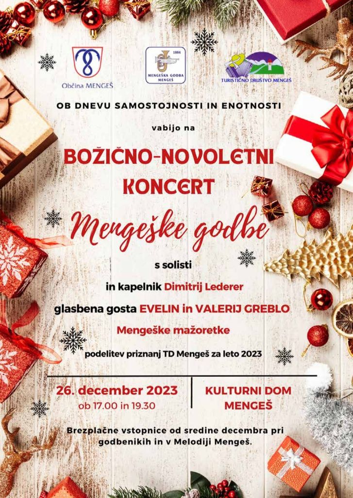 Vabljeni na nepozaben božično-novoletni koncert Mengeške godbe z gosti, ki bo potekal v Kulturnem domu Mengeš, in sicer 26. decembra 2023, ob 17.00 in 19.30. Na koncertu bodo nastopili izjemni glasbeniki in solisti, ki bodo pod vodstvom kapelnika Dimitrija Ledererja, skupaj z Mengeško godbo, ustvarjali glasbeno čarovnijo. Posebno noto bosta dogodku dodali dve gostujoči točki: Evelin in Valerij Greblo ter Mengeške mažoretke.