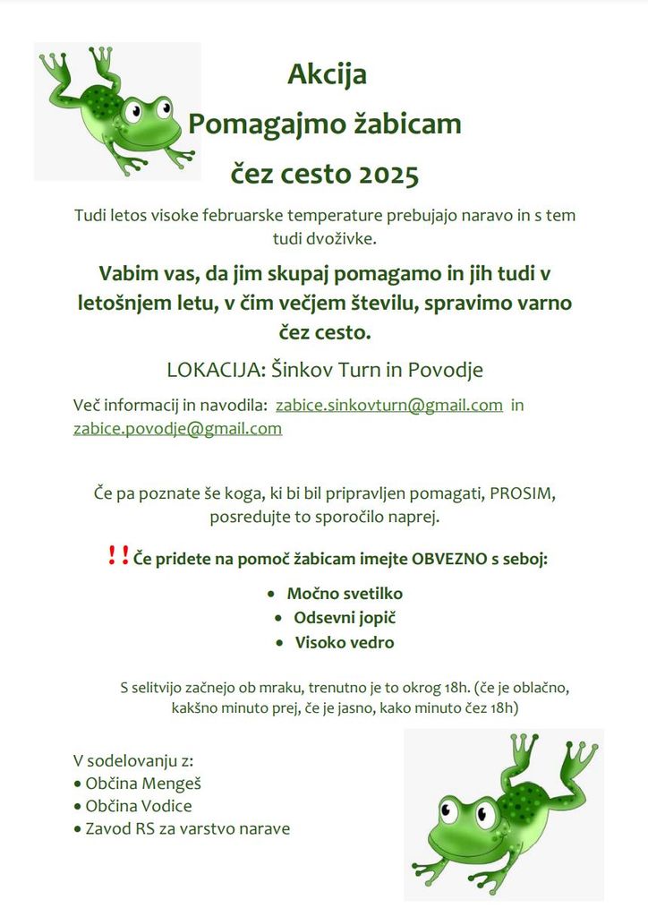 Za več informacij smo vam na voljo na zabice.sinkovturn@gmail.com in FB Žabice ŠinkovTurn Povodje Krumperk.