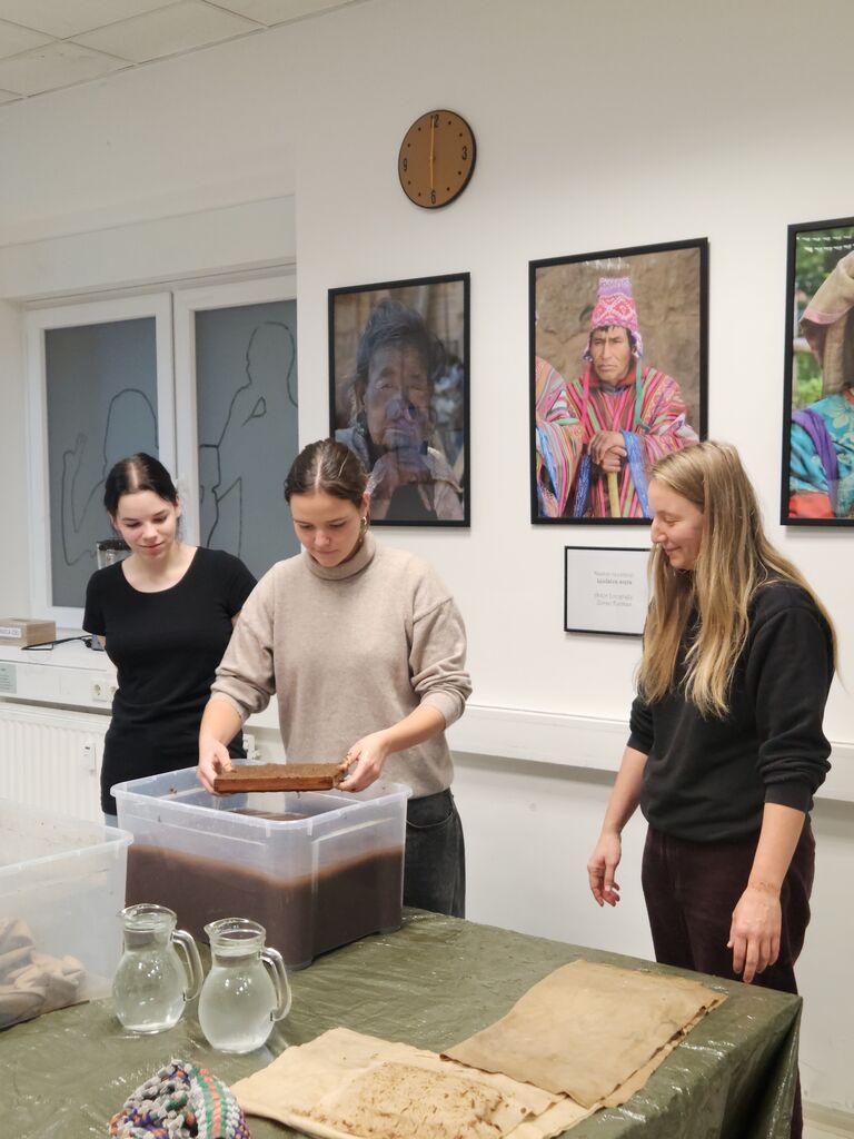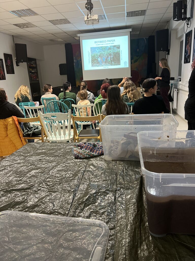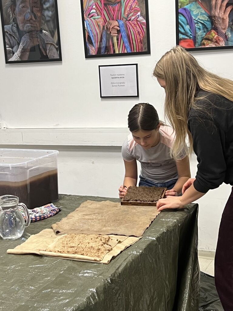 Japonski dresnik, ki je najbolj razširjena invazivna rastlina v Sloveniji, je votla in trdna rastlina, podobna bambusu. Izvedeli smo, da iz nje lahko izdelujemo raznorazne predmete: papir, sadilne lončke in celo pohištvo. Mi pa smo se na delavnici podrobneje posvetili postopku za izdelovanje papirja. Stebla japonskega dresnika naberemo, ko so ta mlada ali srednje stara. Stebla narežemo na koščke in jih prekuhamo (namen je razgradnja lignina, da ostanejo samo vlakna). Vlakna nato damo v mešalnik (blender) z vodo in mešamo, dokler ne dobimo celulozne kaše. Z okvirjem s sitom smo zajeli vlakna iz posode, da so se ta razporedila v obliko papirja, nato pa smo papir prenesli na tkanino. Vsak je odtisnil svoj papir, ki ga bo imel kot spomin na delavnico.