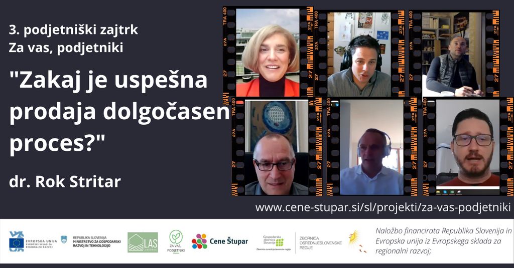 Dr. Rok Stritar je izpostavil, da je prodaja uspešna takrat, ko odkrijemo repetativen proces, ki generira prihodke, kjer sta kreativnost in razvoj v ozadju. Izpostavil je tudi, da uspešna prodaja ni stvar talenta, temveč kako postaviti, ki je predvidljiv in repetativen. Sicer je okolje postalo zelo nepredvidljivo in realnost spremenjena, vendar pa temeljne zakonitosti ostajajo. To pa je reševanje strankinih težav.