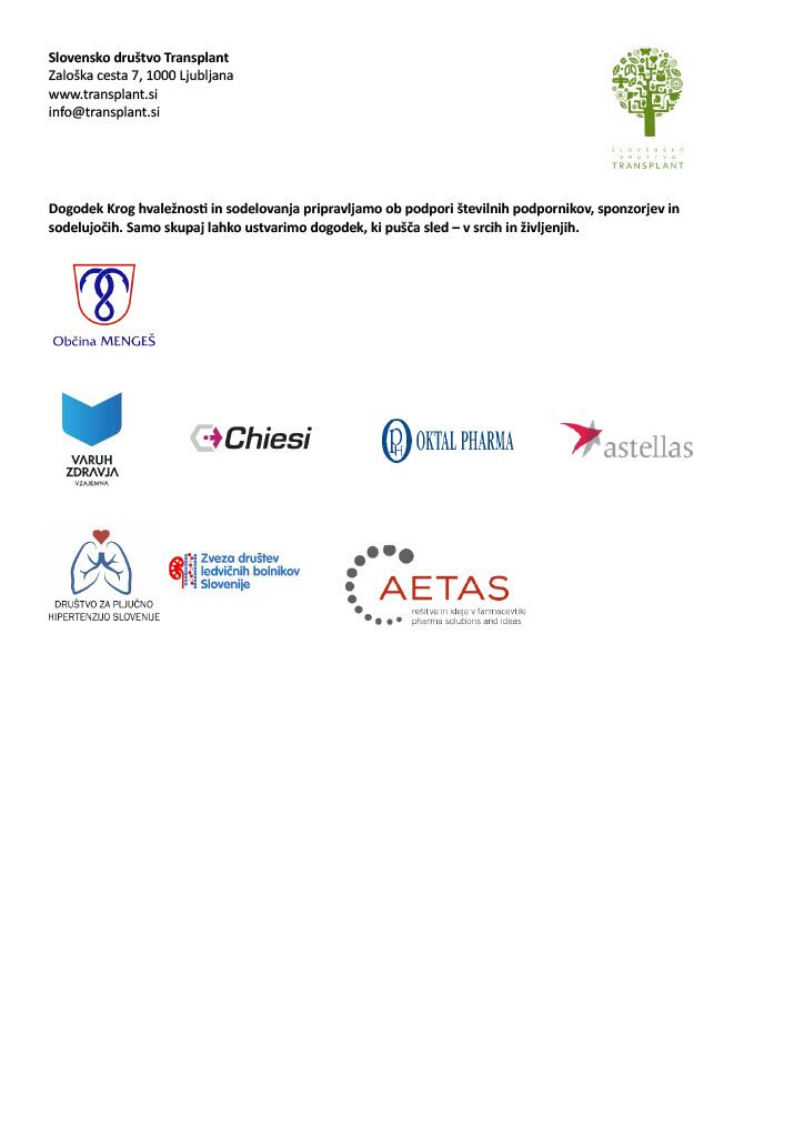 - predstavitev »25 izjav za 25 let Slovenskega društva Transplant«.