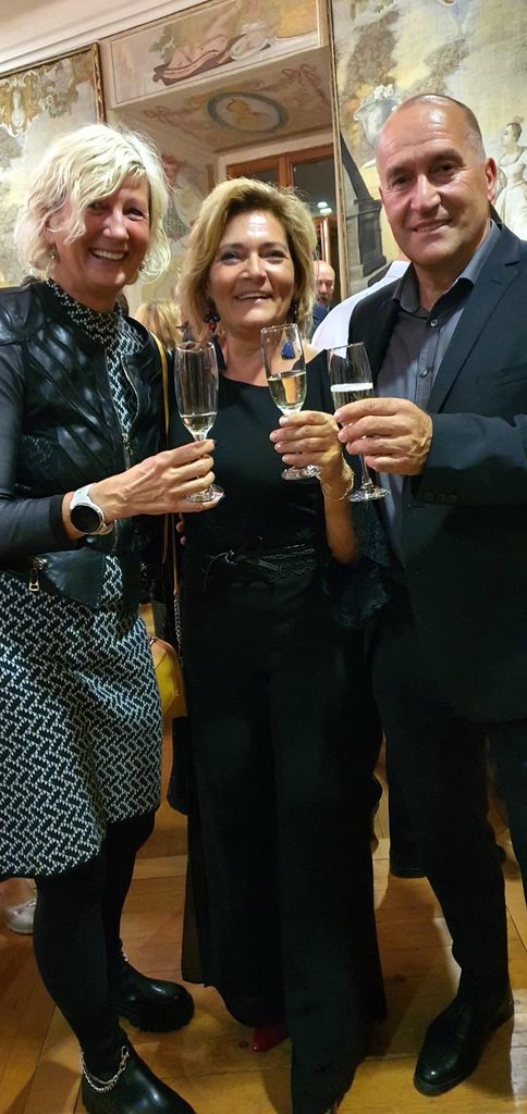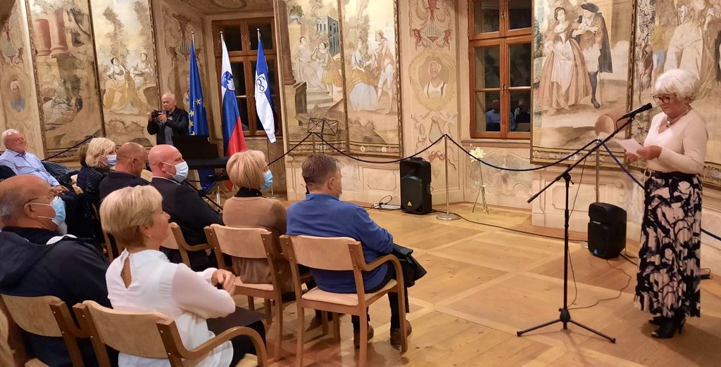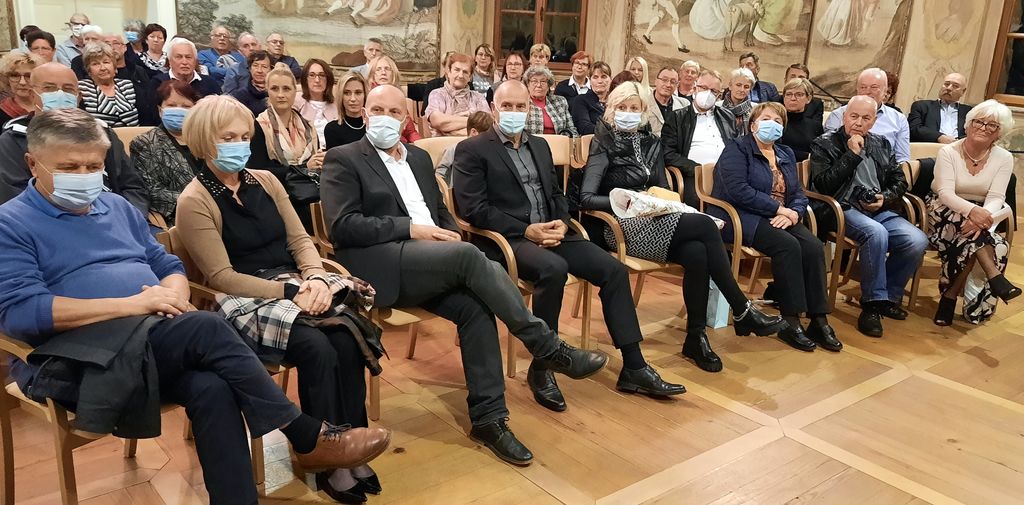 Turistično društvo Dobeno je s pomočjo občine Mengeš v četrtek, 7. oktobra, v gradu Jablje pripravilo lep in pester kulturni večer s pesmijo in poezijo. Povod za ta praznični dogodek pa je bila predstavitev druge in tretje knjige poezij naše dobenske avtorice Frančiške Hunjet; “In beseda je meso postala” in “Jeseni rože ponovno cvetijo”. Prva knjiga, ki jo je Francka izdala septembra 2019 "Moje življenje na papirju", je bila posvečena njenemu očetu in je bila predstavljena na Dobenu oktobra istega leta. Svojo drugo knjigo poezij pa je posvetila svojim sinovom. "Oni so bili zdravilo za vse, kar se je slabega zgodilo," je povedala ob izdaji. Čeprav je bila druga knjiga izdana že junija 2020, zaradi koronskih ukrepov predstavitve teh pesmi nismo mogli izvesti na način, ki si ga dogodek zasluži. Letos julija meseca je Francka izdala že svojo tretjo knjigo svojih poezij “Jeseni rože ponovno cvetijo”. Že naslov pove, da v vsakem obdobju življenja cvetijo rože. "Tiste, ki cvetijo jeseni, je treba še posebej negovati," piše v njeni tretji knjigi. V turističnem društvu smo se dogovorili, da letos, ko so protikoronski ukrepi malo popustili, pripravimo predstavitev obeh knjig. Ko smo o nameri govorili z našim županom g. Jeričem, je z veseljem podprl naš namen in predlagal, da skupaj organiziramo ta kulturni dogodek v gradu Jablje.