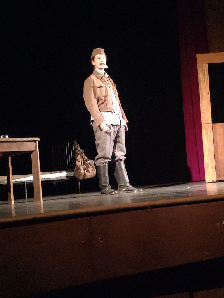 Predstava se je začela s prikazom trenutka, ko je hišo, v kateri je po dolgotrajnih pohodih Štirinajste divizije pesnik za trenutek zaspal, napadla Nemška patrulja. Ob napadu je, še ne popolnoma prebujen, tolažil domače, da bo vse v redu in planil proti vratom. Tam so ga doleteli streli.