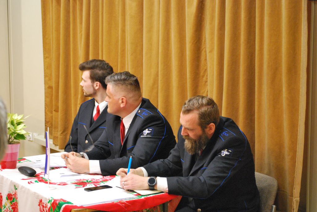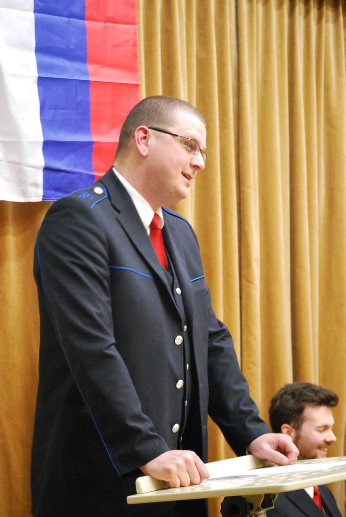 V naslednji točki dnevnega reda smo razrešili enega člana UO in člana disciplinske komisije ter predsednika Žana Avblja, ki je prebral tudi svojo odstopno izjavo. Žanu se tudi na tem mestu lepo zahvaljujemo, da je imel kljub mladosti za leto in pol pogum prevzeti krmilo tako velikega in aktivnega društva. Namesto njega je bil s strani občnega zbora soglasno potrjen Gregor Žun, ki je nagovoril navzoče in nam predstavil svoj pogled in smernice vodenja društva. Prisotni so njegovim planom namenili alpavz podpore. Nato je sledil pozdrav gostov, predstavnikov mengeških društev ter drugih gostov, ki so nam predvsem zaželeli vse dobro v jubilejnem letu delovanja, zaželeli uspešno delo novoizvoljenemu predsedniku ter ponudili pomoč pri obeležitvi 135. obletnice.