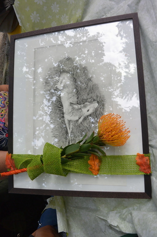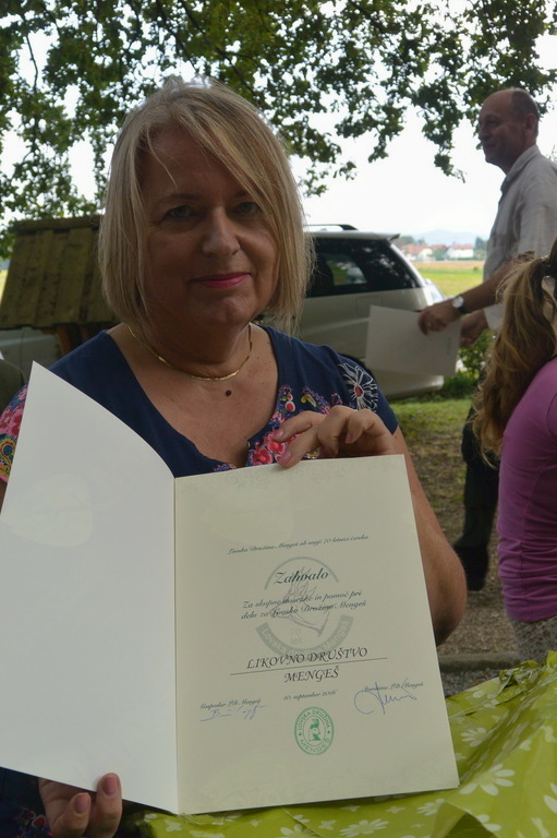Predsednica Likovnega društva Mengeš Leonida Goropevšek je prevzela zahvalo lovske družine za skupne dosežke in pomoč pri delu. V imenu društva je lovski družini v spomin podarila grafiko člana društva Lojzeta Burje in izrekla čestitke ob visokem jubileju.