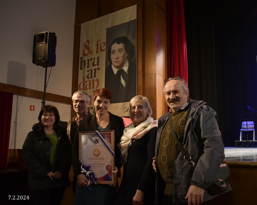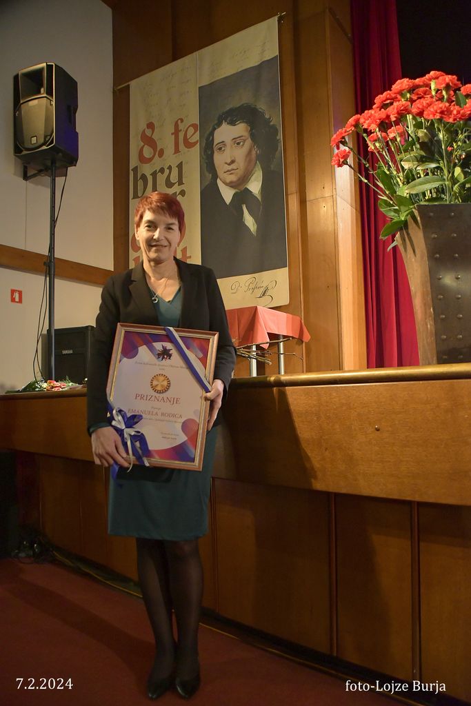 Naša članica Emanuela Rodica, je na slavnostni akademiji ob slovenskem kulturnem prazniku v Kulturnem domu v Mengšu, v sredo 7.2.2024, prejela bronasto priznanje za delo na področju ljubiteljske kulture.