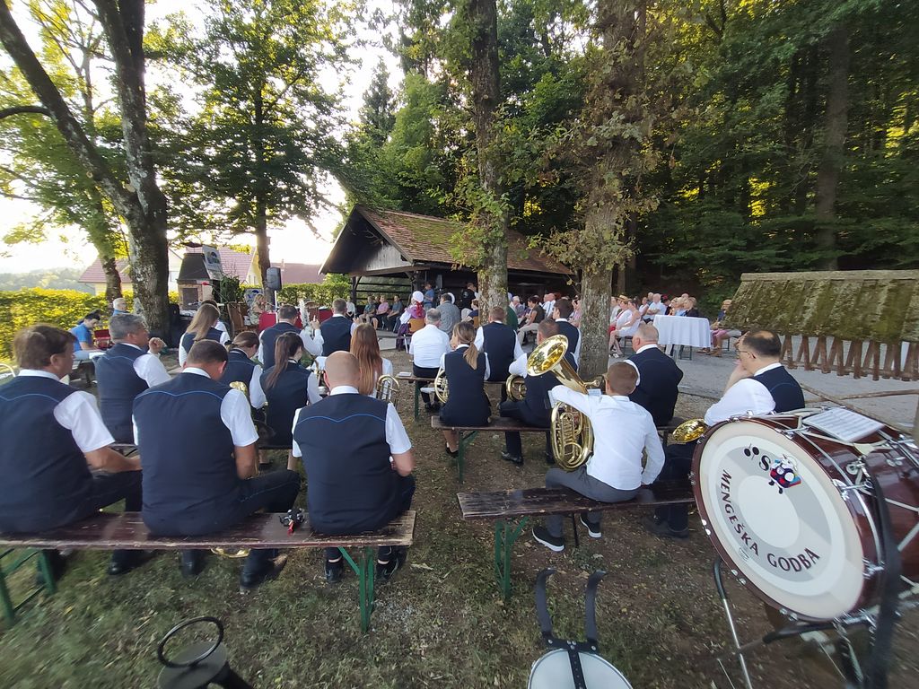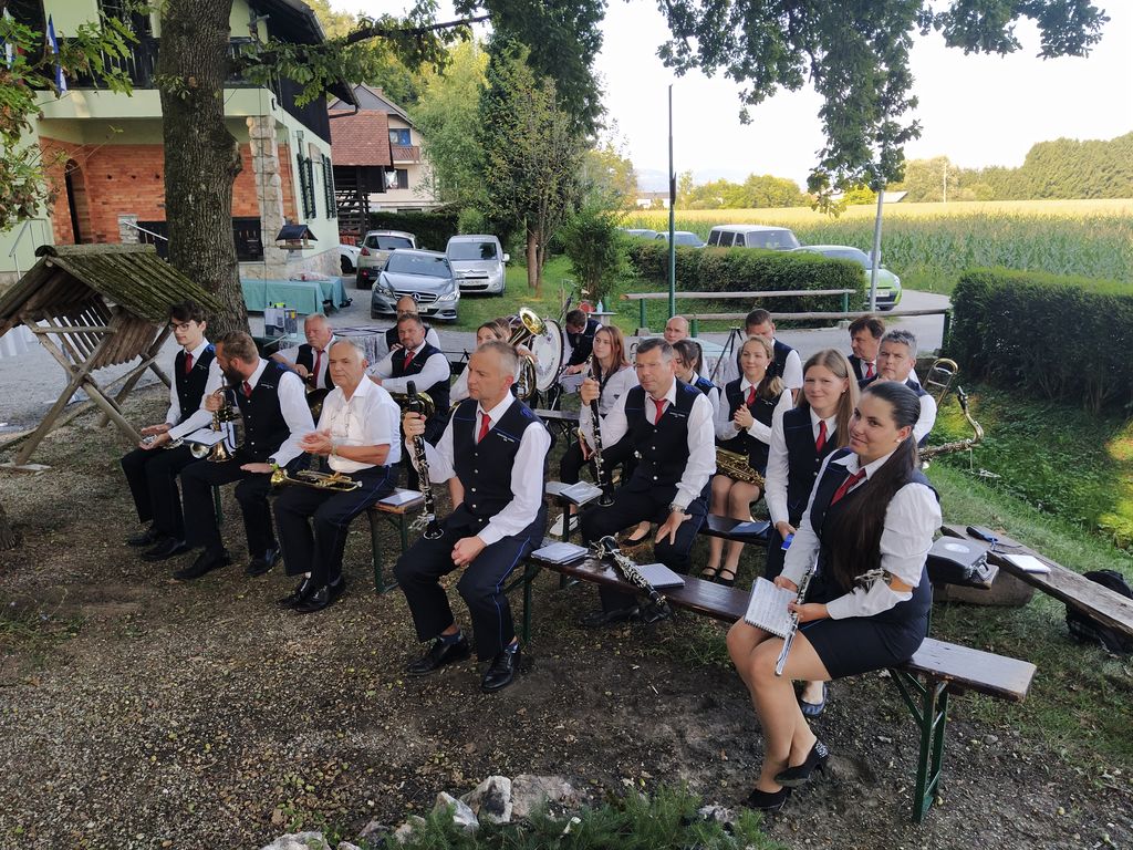Med poletnimi počitnicami nam je kljub dopustom uspelo izpeljati štiri nastope, ki smo jih izvedli v skladu s takrat veljavnimi odloki zoper covid-19 in ob izpolnjevanju PCT pogojev. V soboto, 31. julija, smo bili povabljeni na gasilsko povorko v Velike Lašče, ki ji je sledil krajši koncert. Na poti proti domu smo obiskali Jožeta Pirmana, dolgoletnega tonskega mojstra naših prireditev Pod mengeško marelo.