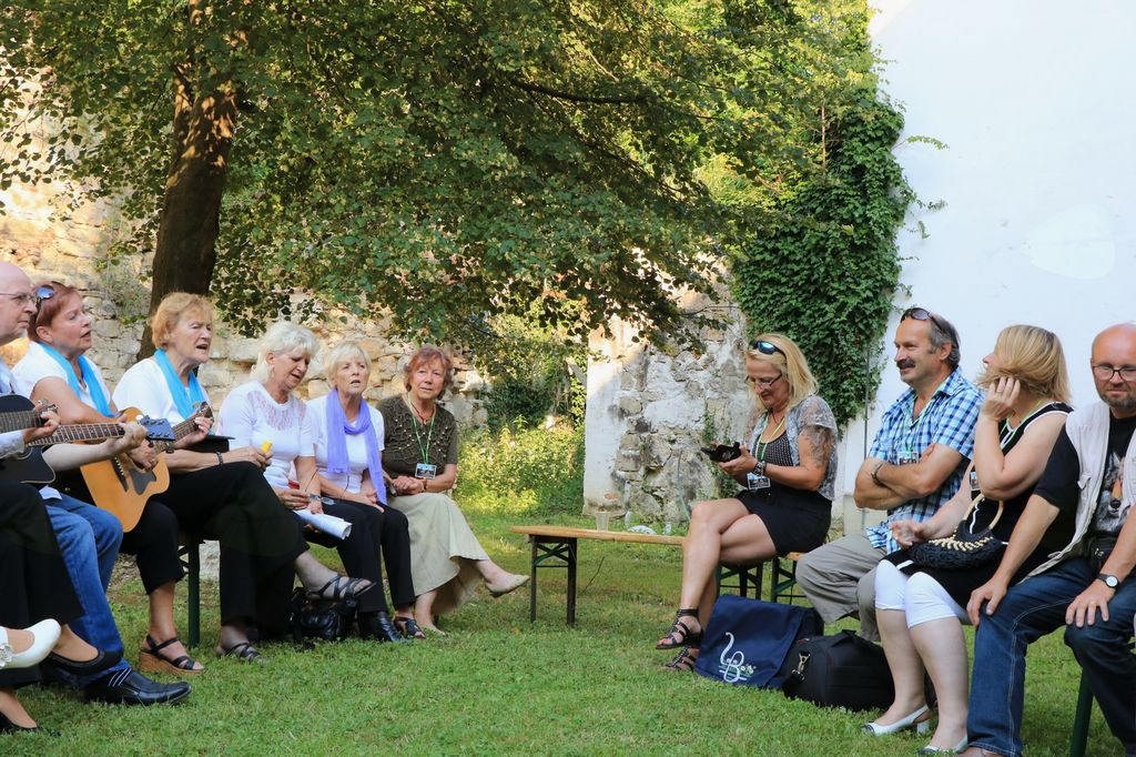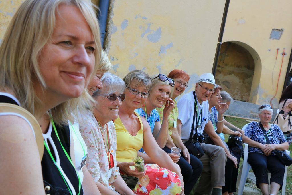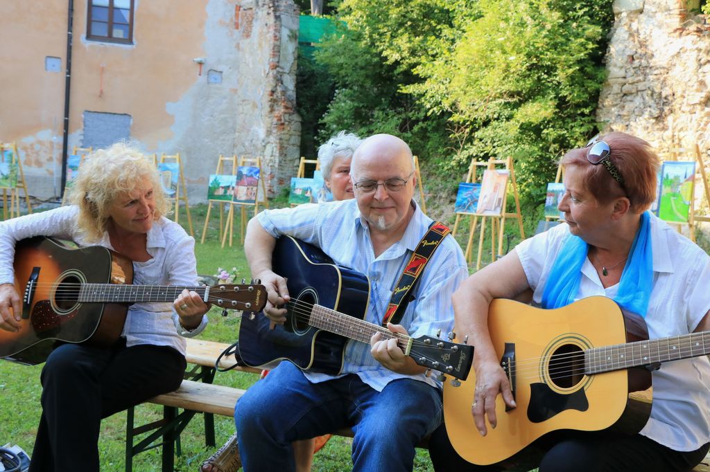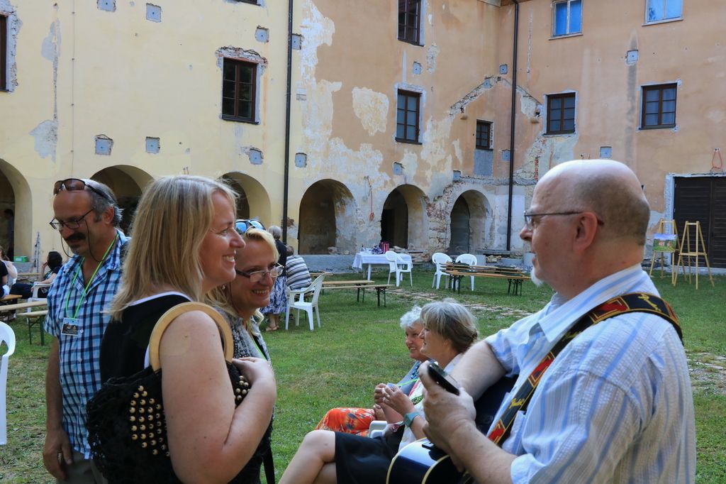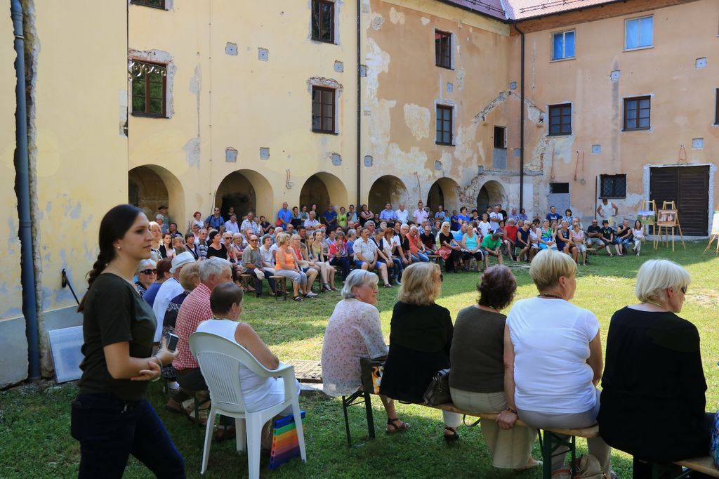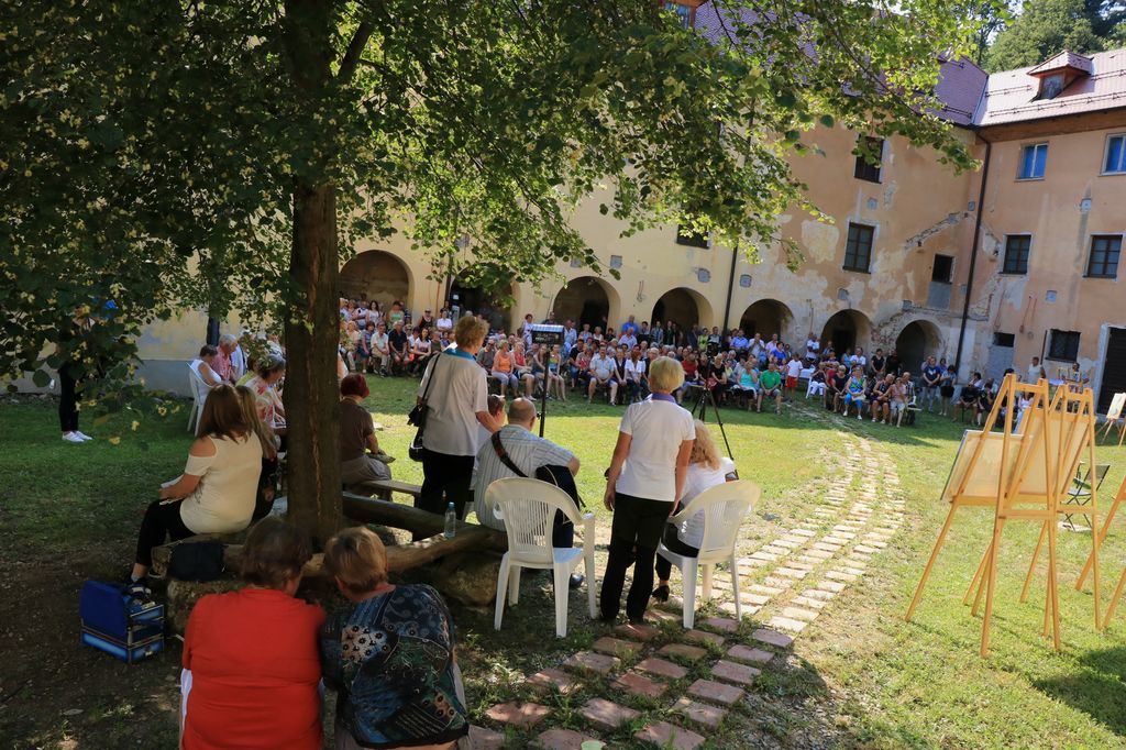 V tem atriju skrivnostne graščine, ki na zunaj kaže propadajočo podobo nekdaj delujočega mogočnega samostana, v notranjosti pa se skriva pravi zaklad, smo v torek 13.6.2017 preživeli lep in nepozaben dan. Sodelovalo 30 ustvarjalcev na grajskem dvorišču in pod arkadami, seveda v senci.