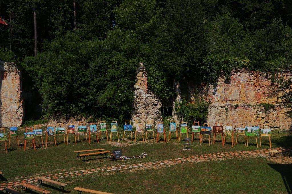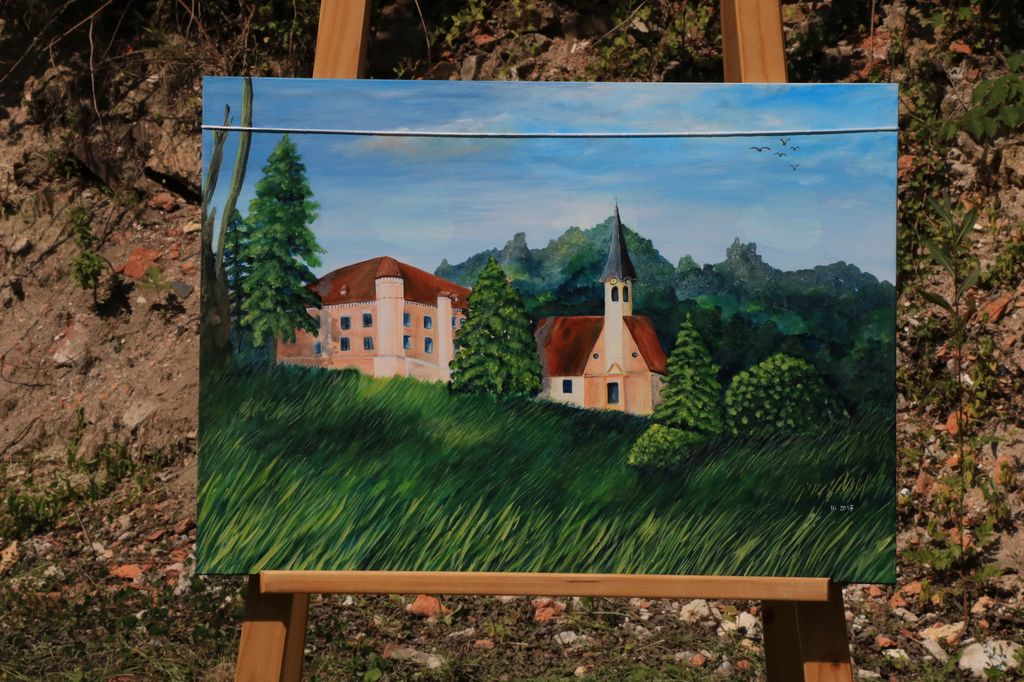 Prav toliko je bilo 20.6.2017 ob 16.00 uri na odprtju razstave postavljenih slikarskih stojal s čudovitimi likovnimi deli in prav vsako je bilo drugačno videnje tega dvorca.