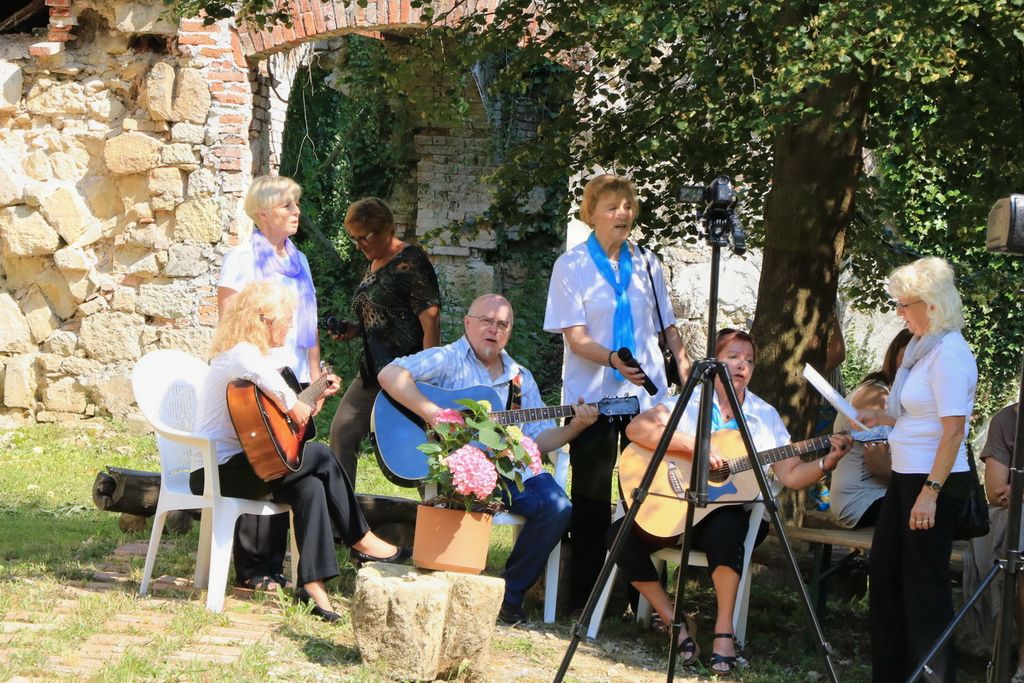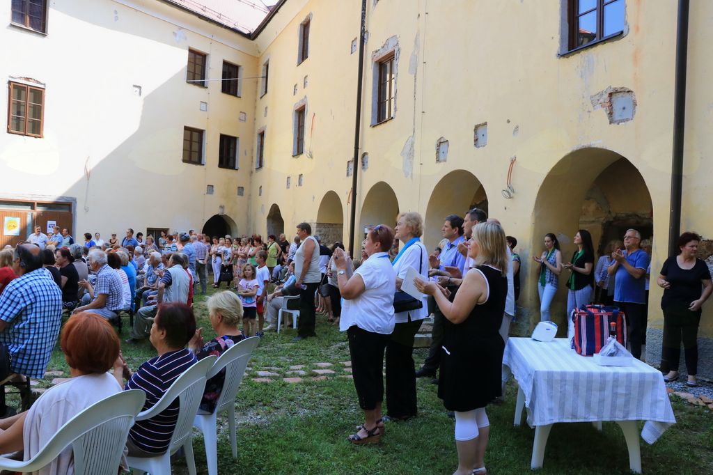 Po končanem kulturnem programu je upravnica Carmen povabila številne obiskovalce na ogled obnovljenega dela graščine. Nekateri so posedeli v senci in v družbi glasbenikov prepepvali, da se je pesem razlegala po dvorišču in pod arkade.