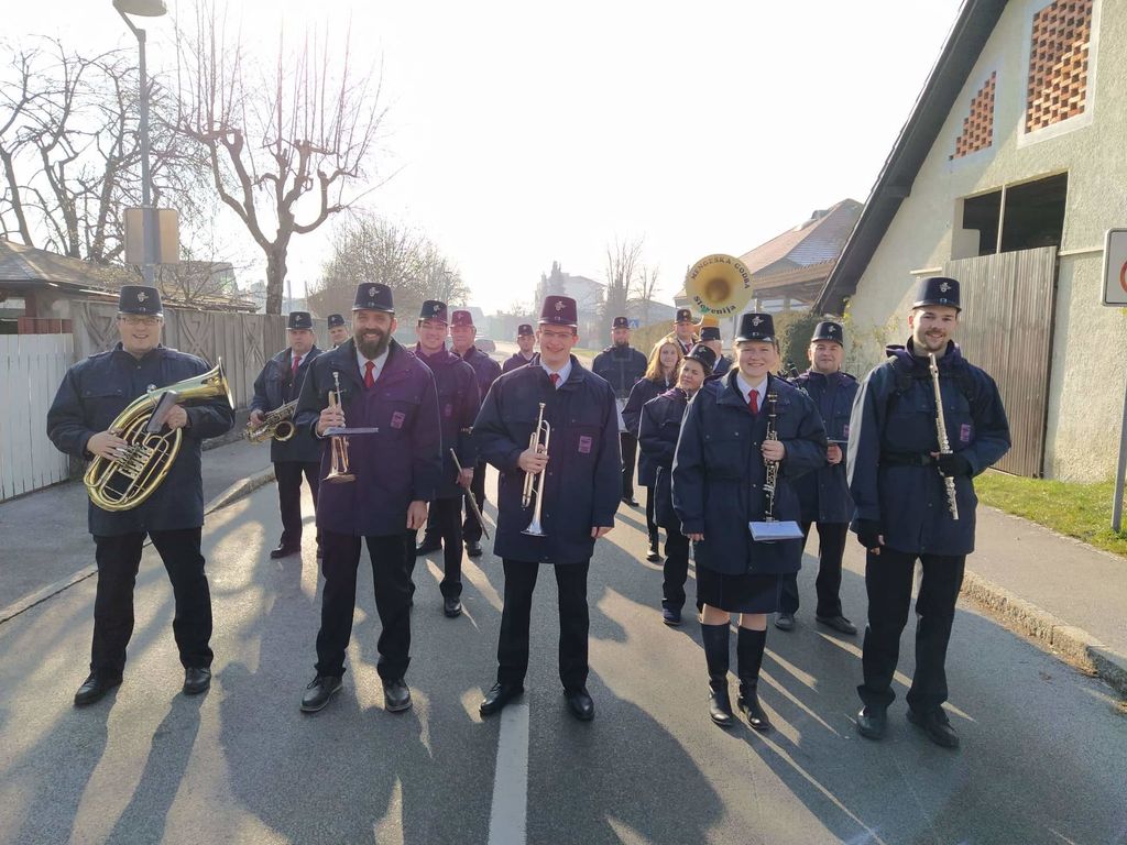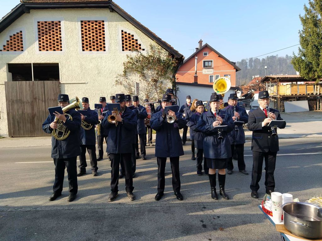 Mengeška godba je na novega leta dan tradicionalno korakala po mengeških ulicah ter občankam in občanom Mengša voščila z glasbeno čestitko in udarnimi koračnicami.