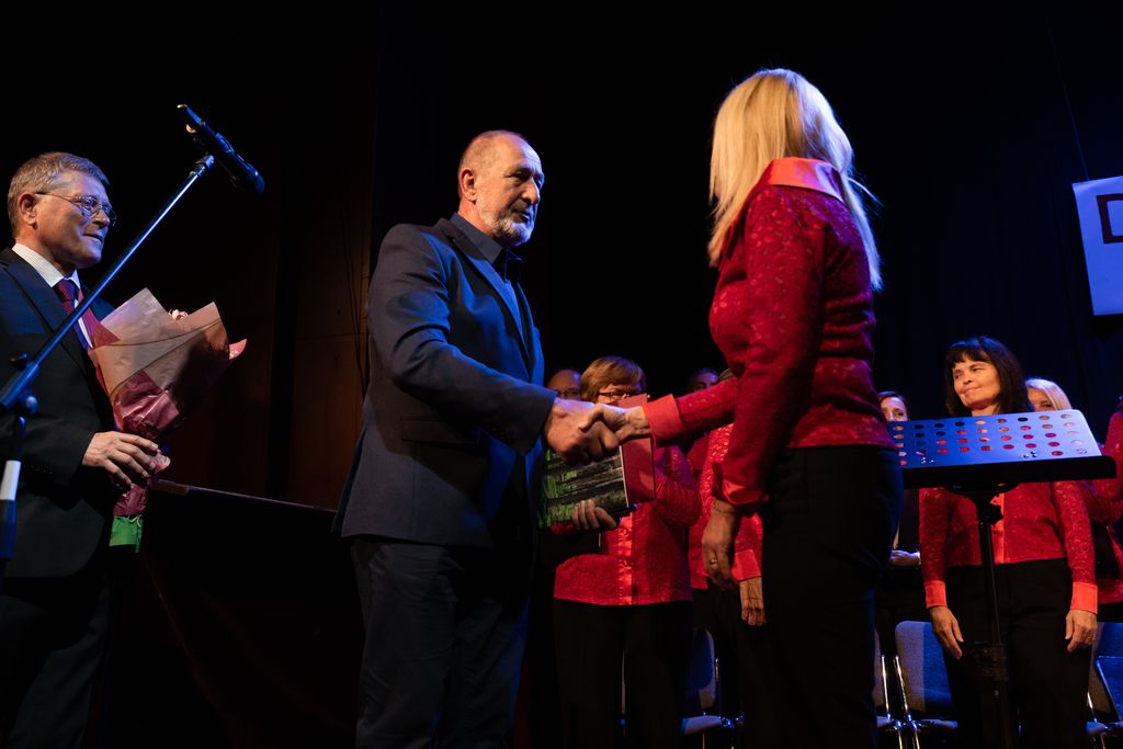 Člane MePZ Svoboda smo posebej razveselili, saj jim je za dolgoletno sodelovanje na prireditvah združenj borcev in za 50-letnico delovanja tov. Igor Kanižar v imenu Zveze združenj borcev Slovenije podelil zlato priznanje ZZB.