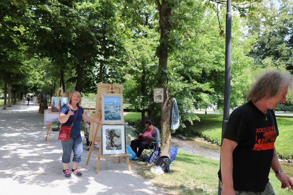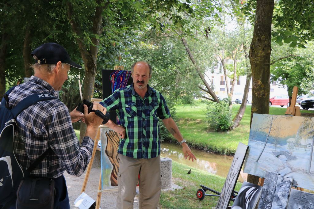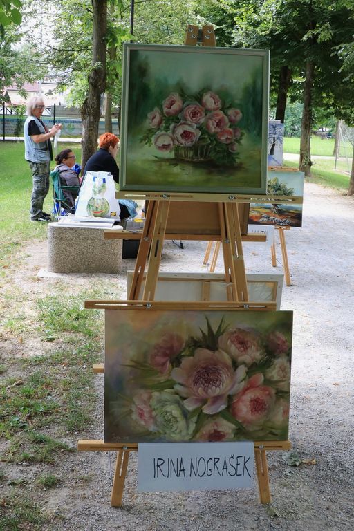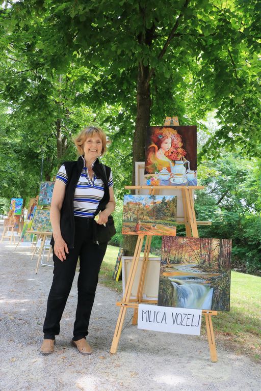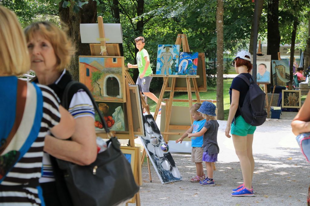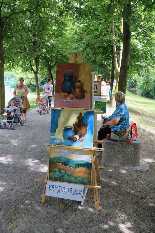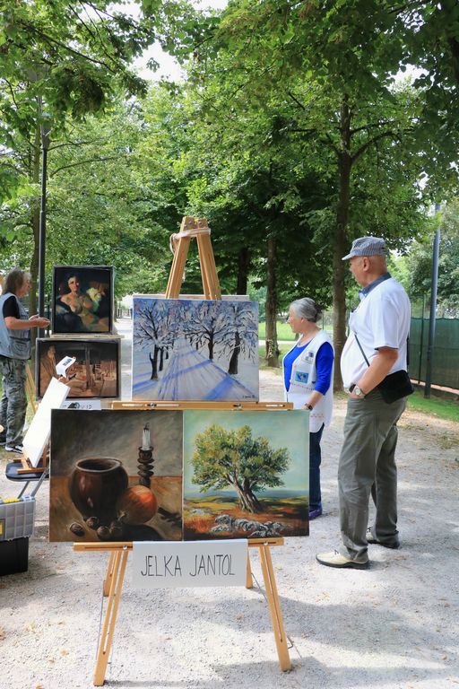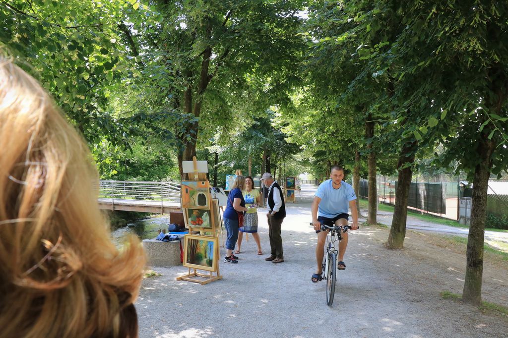 Številni obiskovalci galerije in mimoidoči so občudovali široko paleto raznih motivov in tehnik, opazovali ustvarjalce pri delu in se z njimi tudi družili. Še posebno razveseljivo je bilo opazovati otroke, ki so hodili od stojala do stojala in občudovali razstavljena dela, starši pa so jim razlagali slike. In ni jih bilo malo na sprehodu skozi park … Torej se ni bati za zanimanje za ljubiteljsko kulturo pri najmlajših …