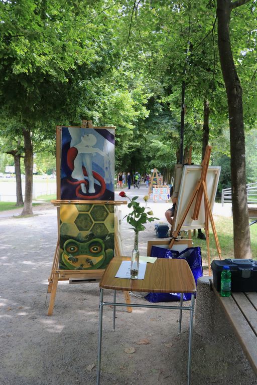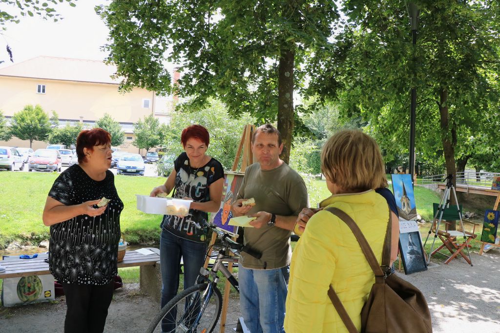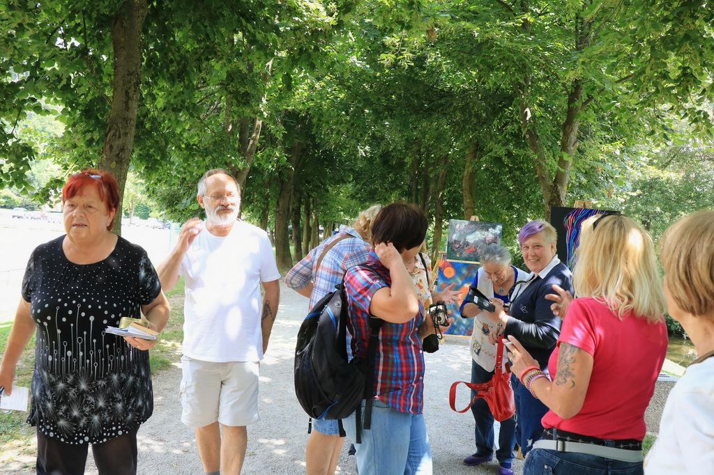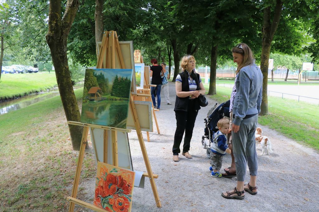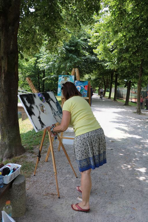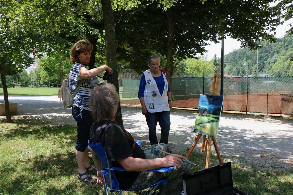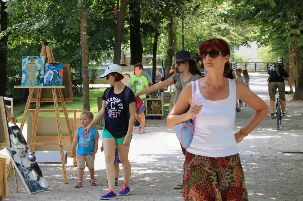 Številni obiskovalci galerije in mimoidoči so občudovali široko paleto raznih motivov in tehnik, opazovali ustvarjalce pri delu in se z njimi tudi družili. Še posebno razveseljivo je bilo opazovati otroke, ki so hodili od stojala do stojala in občudovali razstavljena dela, starši pa so jim razlagali slike. In ni jih bilo malo na sprehodu skozi park … Torej se ni bati za zanimanje za ljubiteljsko kulturo pri najmlajših …