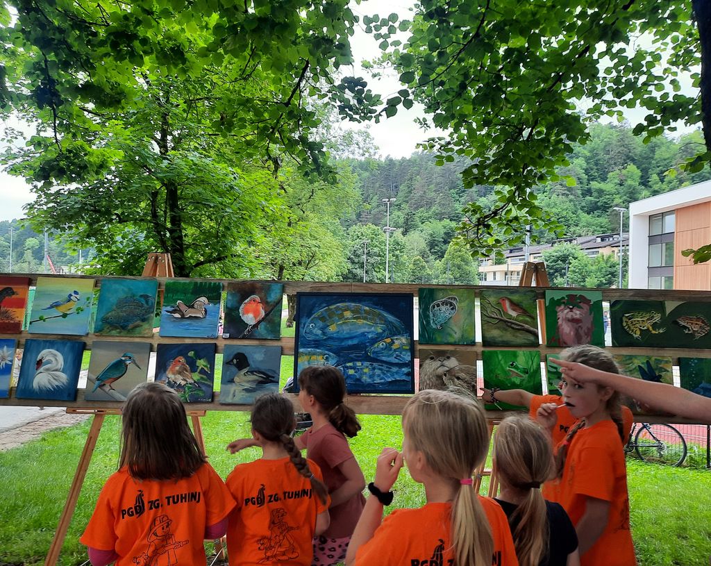 Naša mini skupna razstava z motivi obrečnih, potoških živali je poleg ostalih razstavljenih del obogatila zeleni lipov drevored in privabljala obiskovalce in mimoidoče k ogledu.