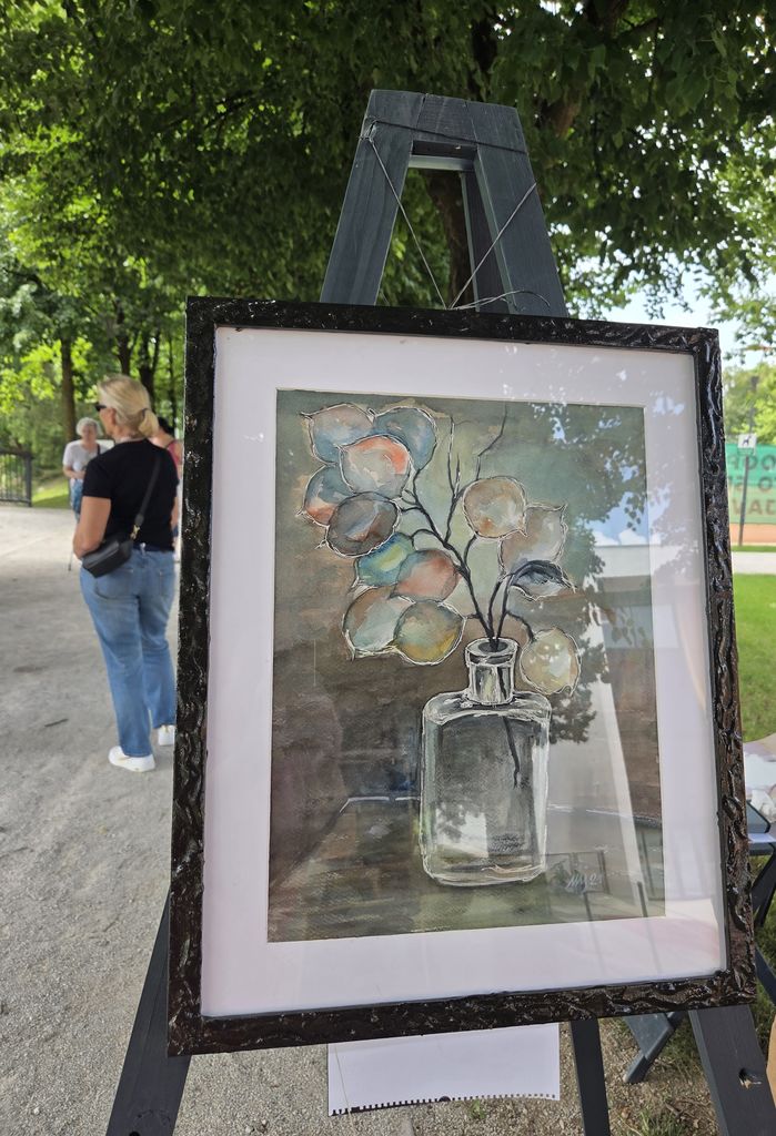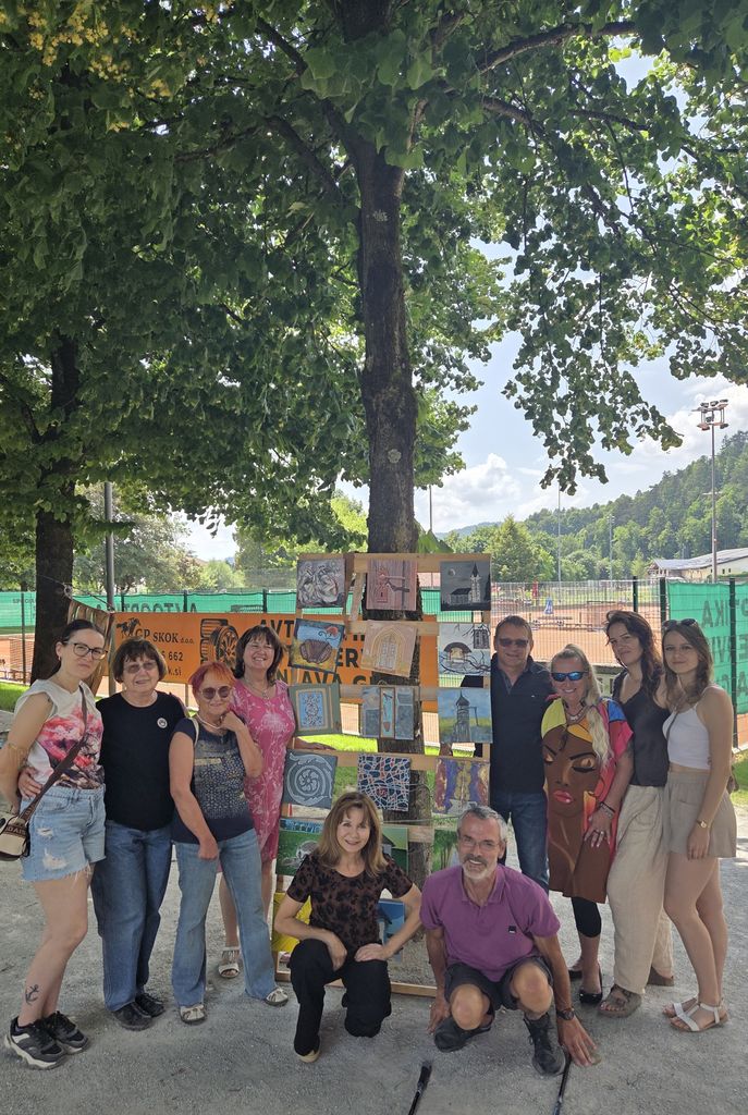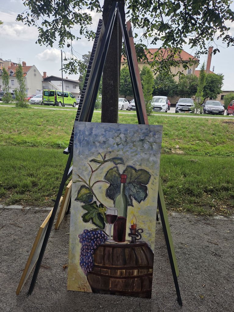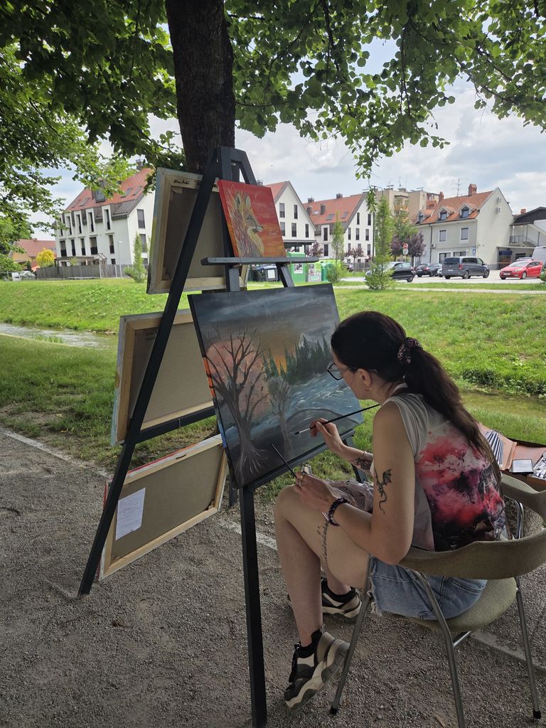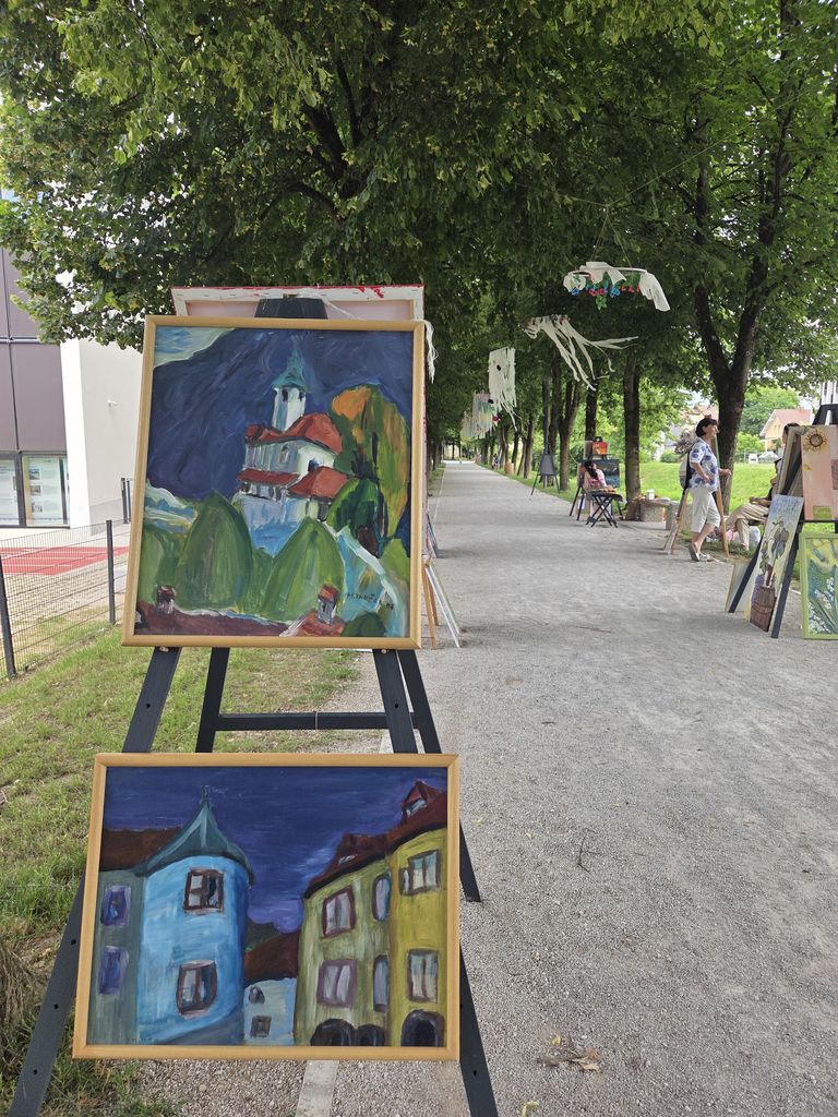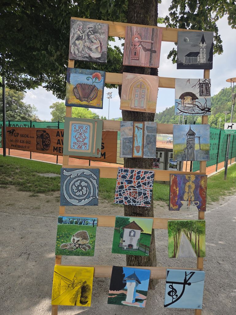 Na slikarskih stojalih je vsak slikar predstavili svoja likovna dela. Obiskal nas je mengeški glasbeni izvajalec, ki je s kitaro in slovenskimi pesmi popestril naš slikarski dogodek.