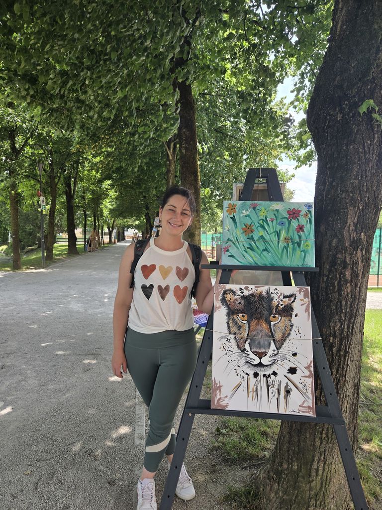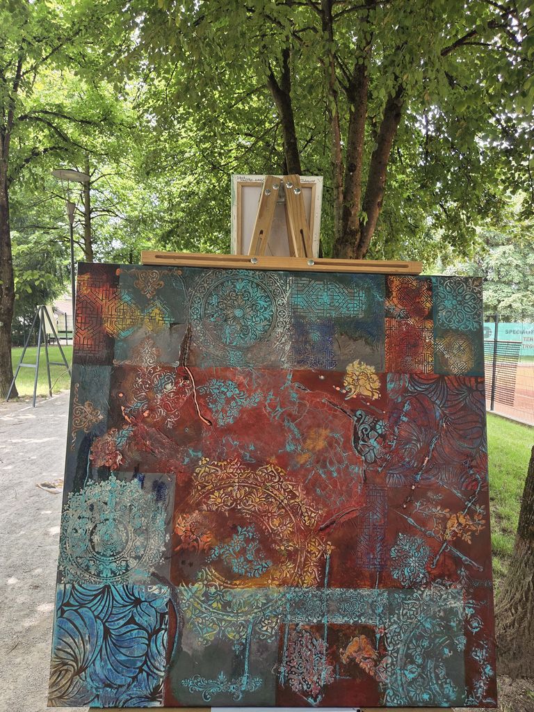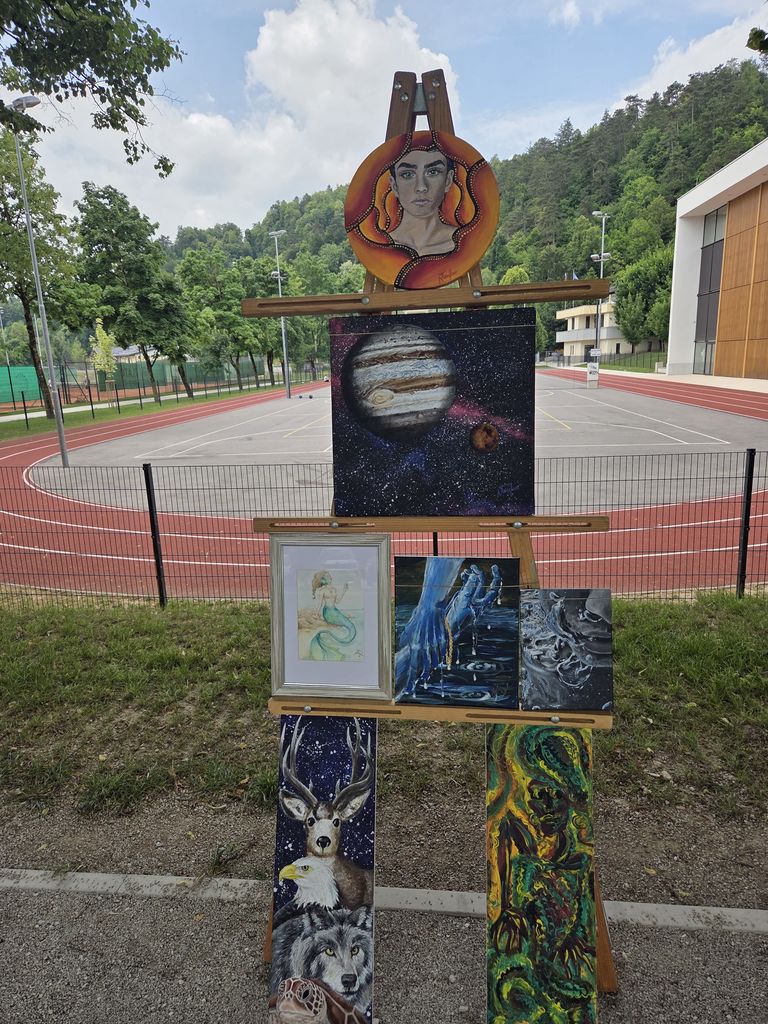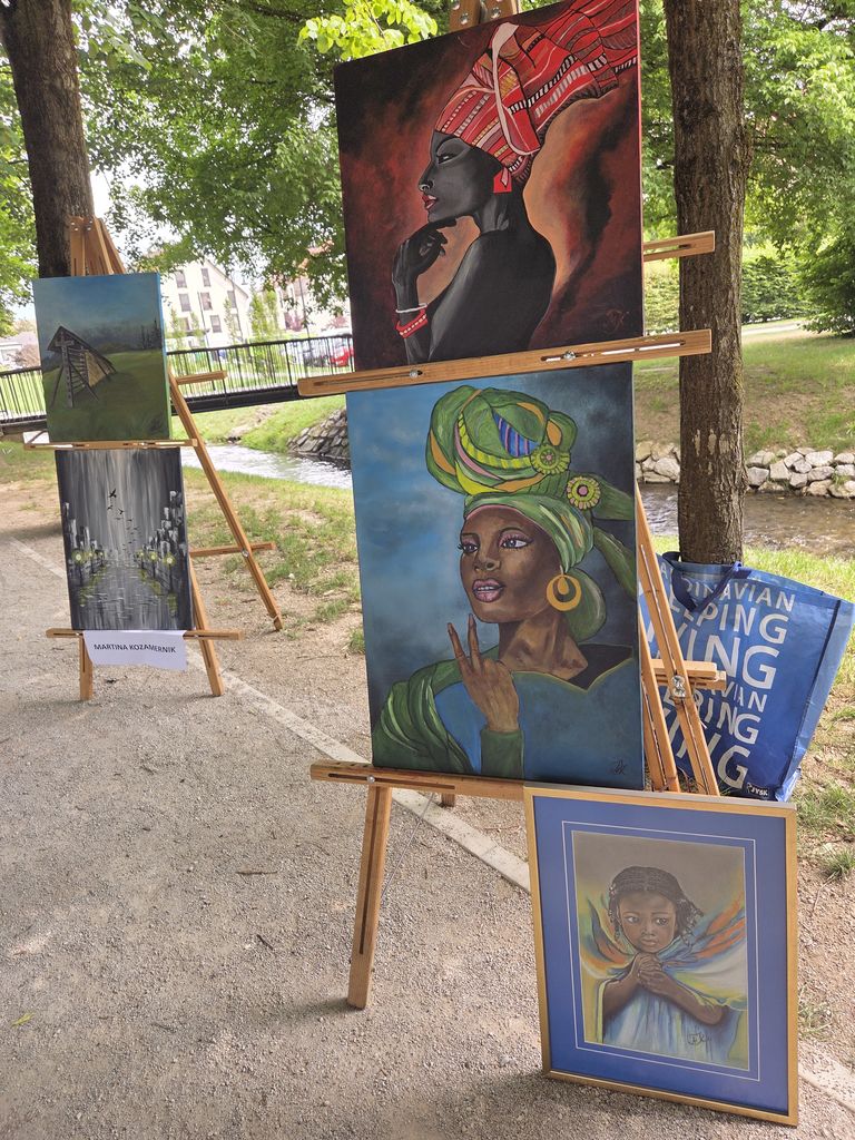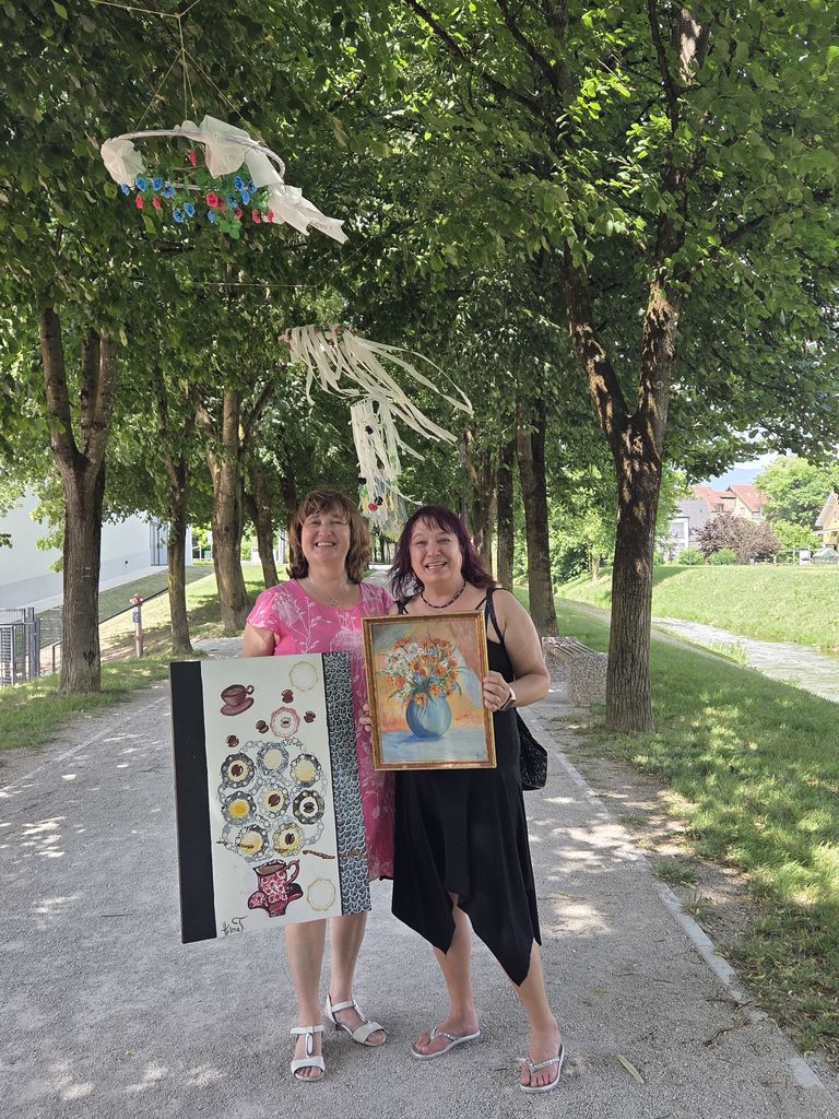 Na slikarskih stojalih je vsak slikar predstavili svoja likovna dela. Obiskal nas je mengeški glasbeni izvajalec, ki je s kitaro in slovenskimi pesmi popestril naš slikarski dogodek.