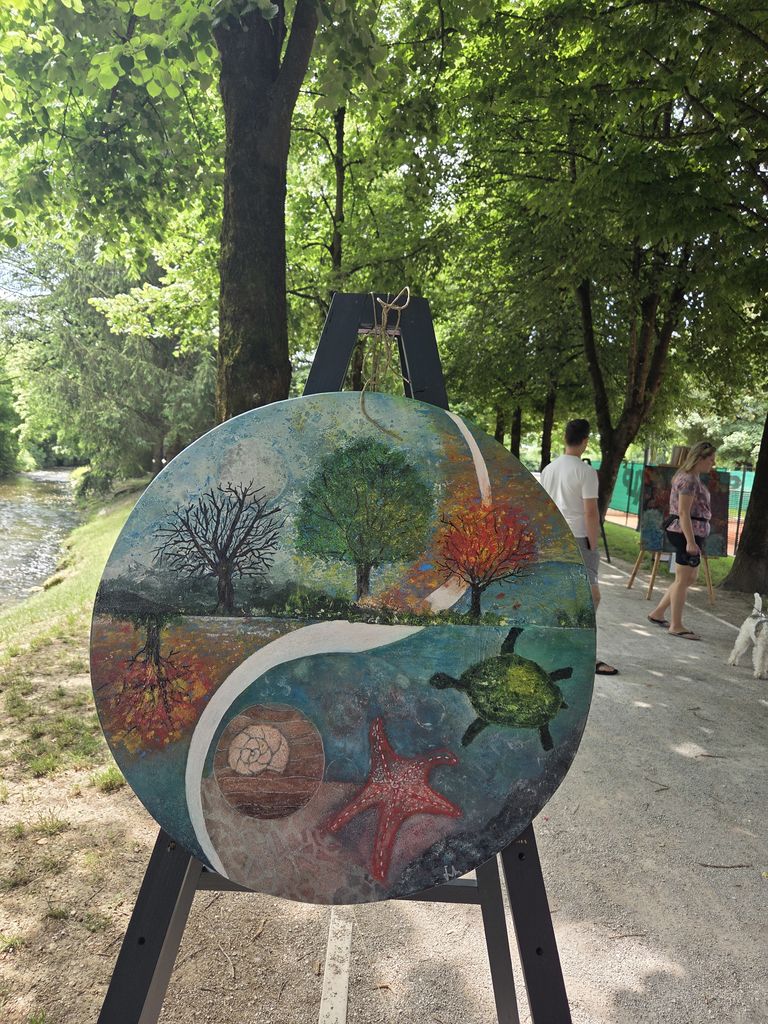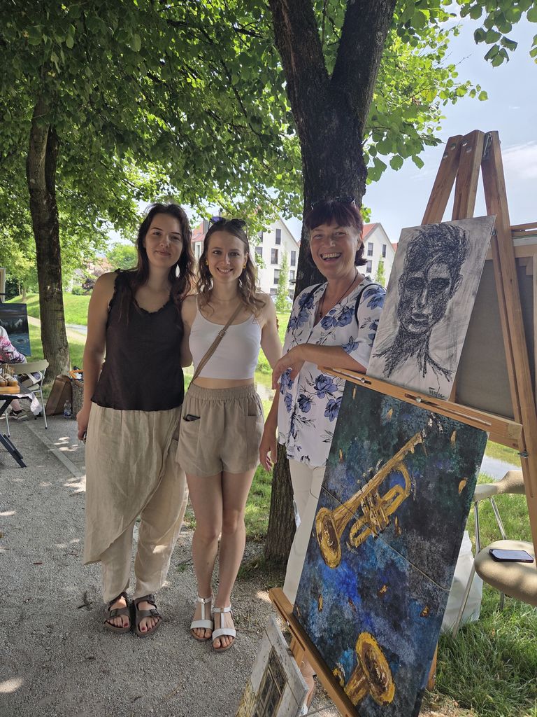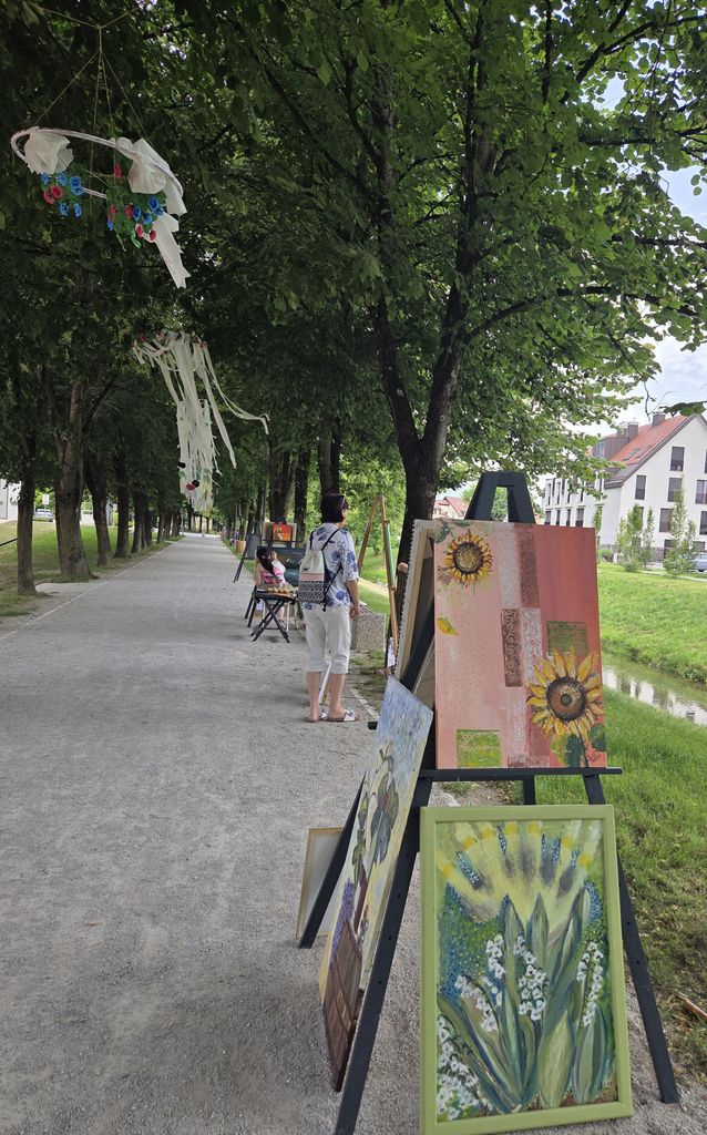 Lepa junijska sončna sobota pod dišečimi lipami z rahlim vetričem je na Staretovem drevoredu ob potoku Pšata z čopičem v roki in klepetom vseh obiskovalcev, mimoidočih zaokrožila celoten dogodek.