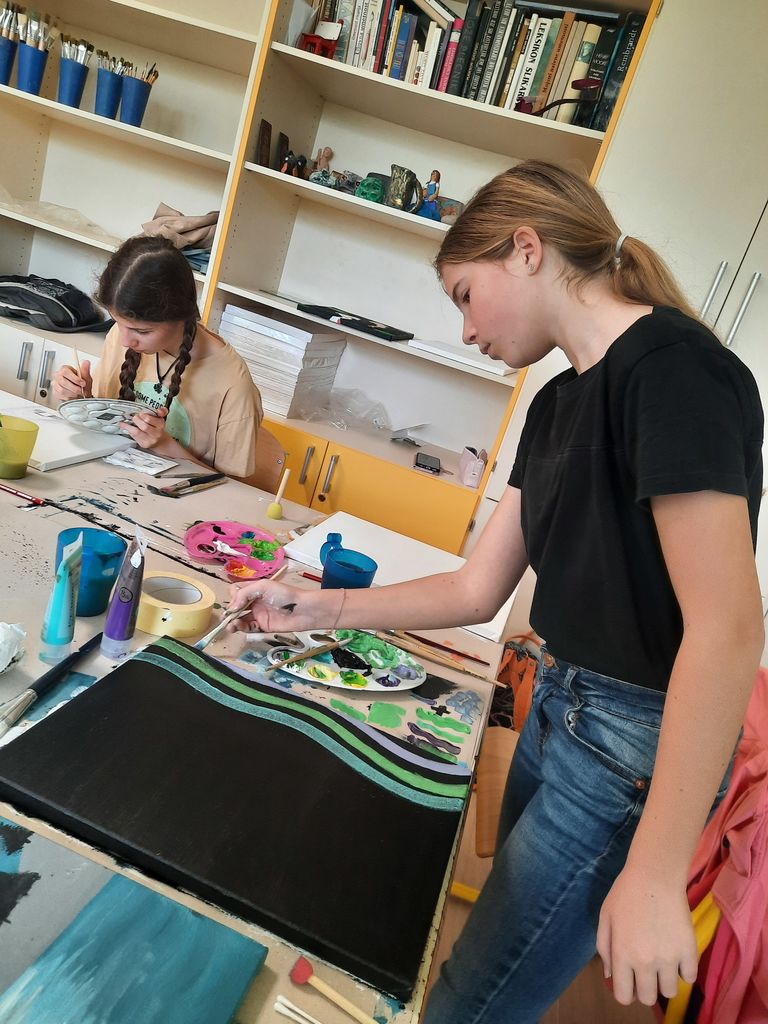 Pod mentorstvom naših članic Marjane, Nevenke, Ani, Helene, Elme, Nejke in učitelja za likovno umetnost Sama Zelka ter našega mentorja Lojzeta Kalinška so nastale zanimive umetnine.  Sodelovalo je dvajset učencev.