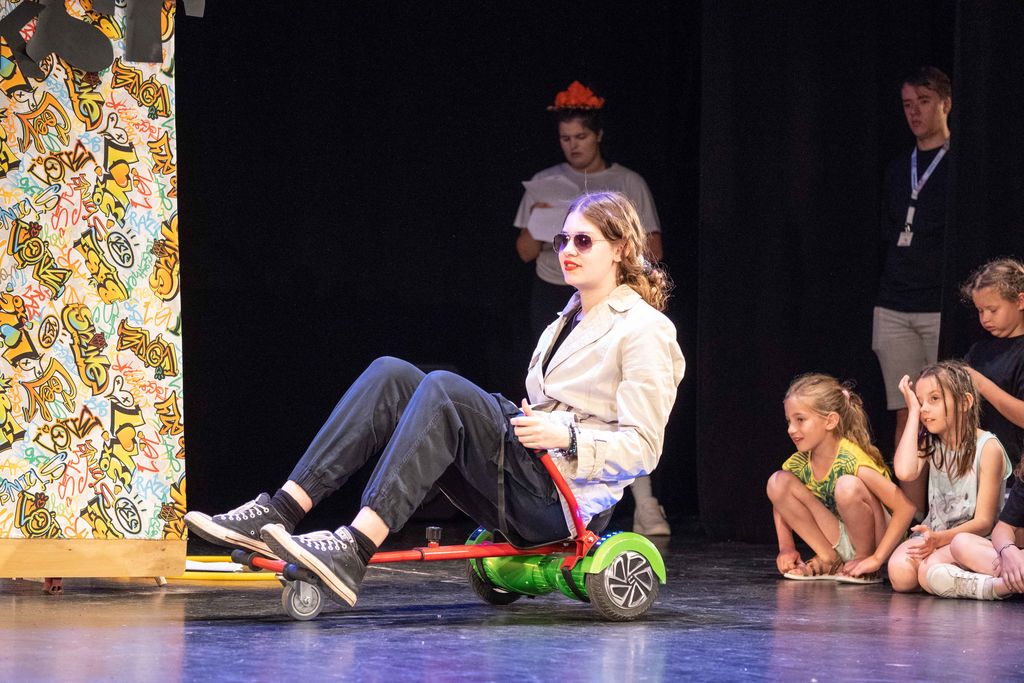 Na začetku je občinstvo in plesalce pozdravil župan Bogo Ropotar in jim zaželel veliko plesnih užitkov. Tekom predstave so se predstavile vse plesne skupine Moveo, plesalci, stari od 3 do 17 let, skupaj 91 nastopajočih. Doživeto so odplesali svoje točke in tudi tokrat navdušili gledalce. Prelevili so se v divje živali, lovce, bogataše, cirkuške živali in pripravili pravi plesni spektakel. Poudarek zgodbe je bil na igrivosti in zabavi, zato tudi smeha ni manjkalo. Čudovita zgodba o prijateljstvu in iskanju poti domov nam je tako pričarala čudovit zaključek in nas popeljala v brezskrbne poletne dni. Pri izvedbi plesne predstave je sodelovalo 14 prostovoljcev Mladinskega centra, brez katerih tako velik projekt ne bi bil mogoč.