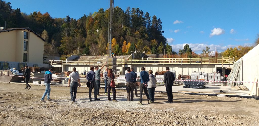 Predstavnik izvajalca Nejc Vozelj, vodja gradnje, SGP Graditelj, je pojasnil, da dela potekajo skladno s terminskim planom in da bodo konec oktobra postavljene stene. V prvi polovici novembra bodo ob ugodnih vremenskih razmerah z avtodvigalom postavljeni strešni nosilci, nato bo objekt pokrit z montažno streho in do zime pa tudi zaprt. Bogdan Jamšek, tehnični direktor, SGP Graditelj, pa je pojasnil, da so posebnost dvorane tudi svetlobniki, ki preusmerijo največjo mogočo količino zunanje svetlobe s strehe v notranje prostore, s tem je omogočena izvrstna naravna razsvetljava od svita do sončnega zahoda. Pojasnila sta, da bodo v zimskih mesecih nadaljevali z deli v notranjosti objekta.