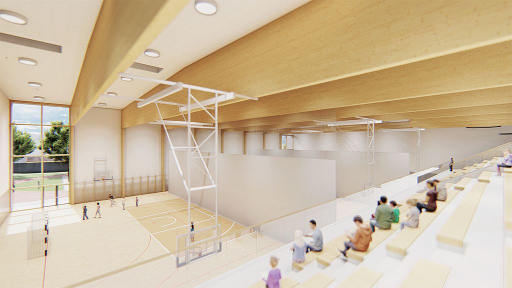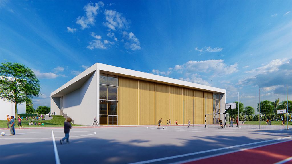Predstavljena vizualizacija je zgolj prezentacija PZI dokumentacije, zato se lahko končna podoba zgrajene dvorane v določenih detajlih razlikuje od realizirane podobe.