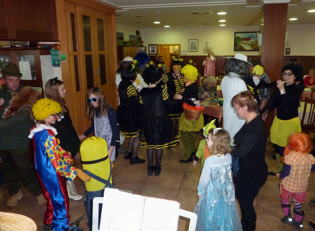 Frenk je s svojimi instrumenti poskrbel za glasbo in na plesišču so se v veselem razpoloženju zavrteli skupaj tisti z maskami in tisti brez. Ob 16 uri je tričlanska komisija izbrala najboljše maske, posebej med odraslimi in posebej med otroci. V obeh kategorijah so najlepše 3 maske dobile privlačne nagrade, katere je prispevalo TD, nekaj pa je primaknil še kmečki turizem Blaž. Vse maškare so dobile tudi slasten pustni krof in seveda, glasen aplavz vseh navzočih. Veselo razpoloženje prisotnih, ob zvokih plesnih ritmov, se je nadaljevalo, pozno v večer.