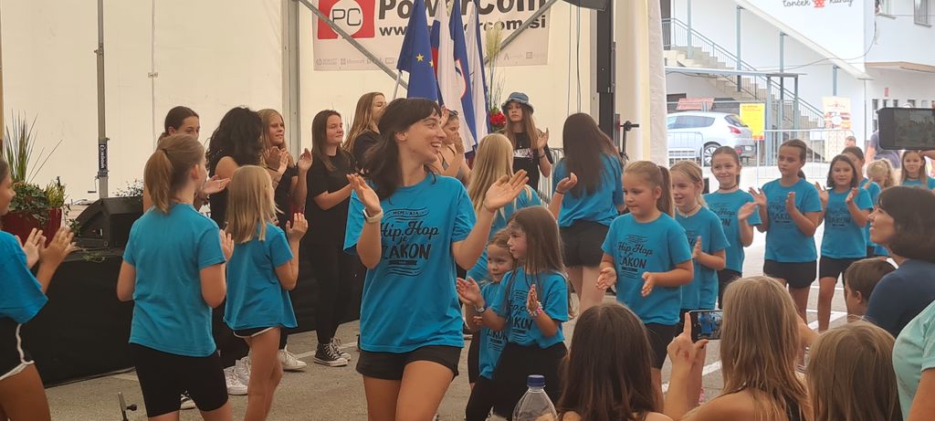 Dogajanju na odru je vodila moderatorka Maša Povše. Po uvodnem pozdravu sta se predstavili mladinska, tekmovalna hip hop skupina Moveo iz AIA z energično formacijo »Explode«. Za najstarejšimi plesalci pa najmlajša skupina, malčki Moveo iz AIA, ki so zaplesali na pesmi »Iko iko« in »Where are you now«. Plesalci trenirajo pod vodstvom trenerk Sanje Tomšič in Eve Bauer. Za tem so se plesalcem pridružili mladi gledalci in zarajali skupaj z njimi. Sledila je delavnica Igrajmo se impro pod vodstvom Nike Manevski, študentke dramske igre, ki je aktivna na različnih področjih umetnosti, s sodelovanjem Zoye Petrič in Neže Jankovič. Za njimi so se predstavile Mengeške mažoretke in twirelice s popularnimi Iko iko, Mama mia in Barbie girl. Nato smo si ogledali predstavitev krajšega treninga kickboxa (vse bolj priljubljene borilne veščine) Športnega društva Sonkal, ki trenirajo v prostorih Playbox športnega centra. Trening je vodil Ivan Budimir. Sledila je otroška predstava Pustolovščine Bibi in Gustija, ki jo je pripravila Pravljična Frtina. Za njimi sta se predstavili baletki Lana s krajšim baletnim insertom in Tea z modernim baletom, ki sta skupaj z Vanjo otroke povabili tudi na kratko baletno delavnico z ropotuljicami. Program se je nadaljeval z mladima, talentiranima pevkama, Živo Gornjec Hodnik in Asjo Gliha iz glasbene šole VOX. Za konec pa smo si ogledali plesno točko RISE, ki so jo zaplesali predstavniki različnih starosti Moveo iz AIA.