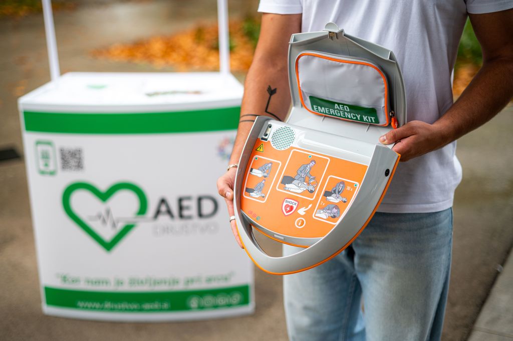 Defibrilator je priskrbelo Društvo AED. Gre za neprofitno organizacijo, ki si z iniciativo »AED v vsako občino« prizadeva za večjo dostopnost naprav in širjenje znanja o nujni pomoči ob srčnem zastoju. Po vsej Sloveniji so omogočili že več kot 230 naprav in izvedli prek 1900 ur delavnic oživljanja.