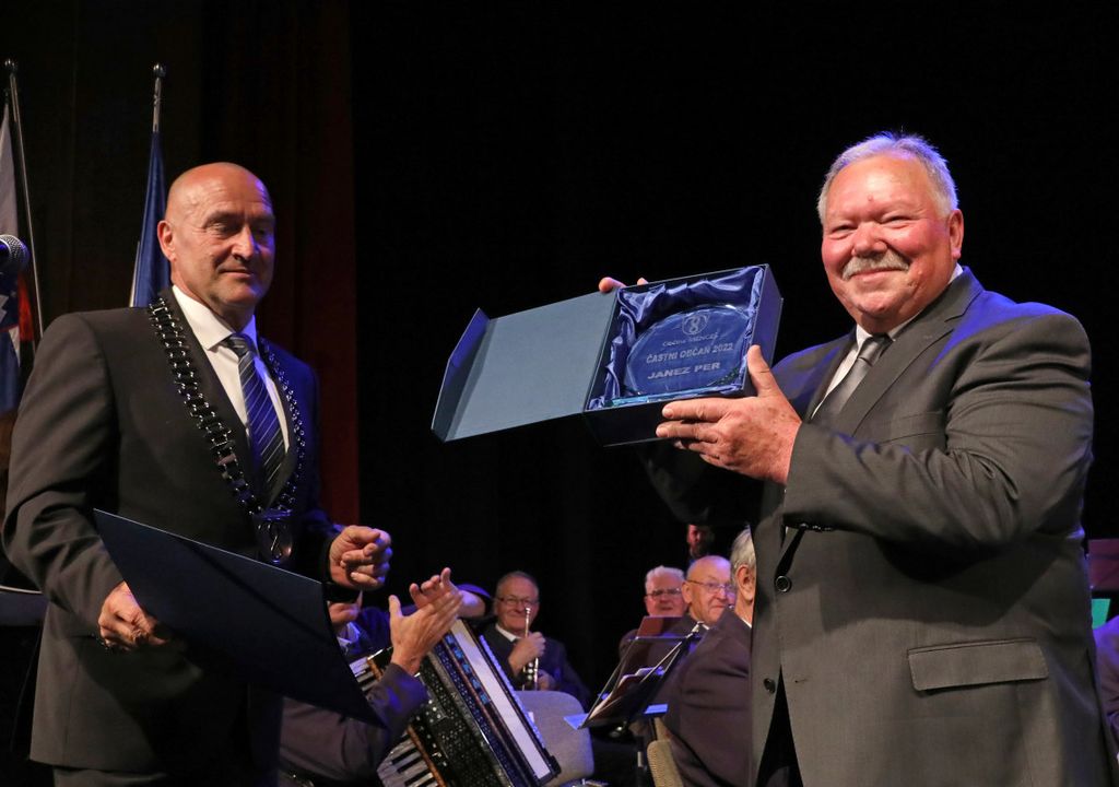 Sledila je podelitev naziva častni občan občine, ki se podeljuje vsake 4 leta. Naziv častni občan je prejel Janez Per za svoje delo v družbenem in društvenem življenju občine ter za promocijo občine v Sloveniji in v svetu. V svojem govoru se je zahvalil vsem, za podporo in sodelovanje ter k vključevanju v društveno življenj občine povabil vse občanke in občane: »Občina Mengeš ima vse kar imajo veliki, pa vendar ostajamo majhni, predani drug drugemu. Številni me sprašujete, kdaj postaneš Mengšan. Ko se vključiš v društva, v življenje občine. Pomembno je, da ne razmišljajmo, kaj nam občina lahko da, ampak kaj lahko mi damo občini. Spoštujmo se, radi se imejmo in vsi bomo dobro živeli. Hvala predlagateljem, hvala županu in drugim. S ponosom sprejemam to priznanje.« Nato je z Veteransko sekcijo mengeške godbe zaigral znano pesem z naslovom Janezov bariton.