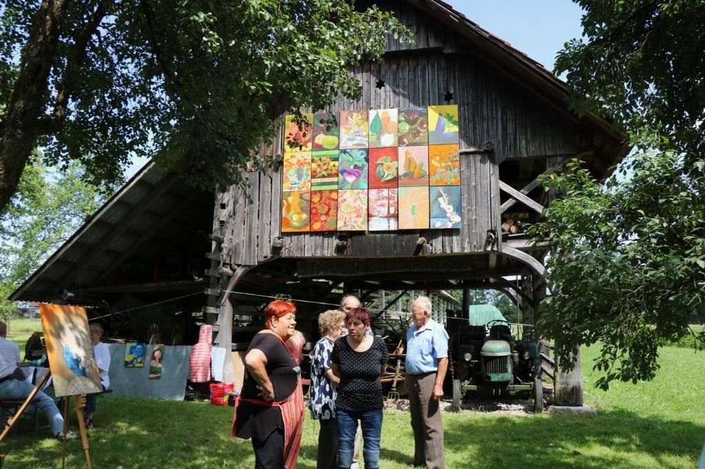 Desetič smo se že srečali likovniki Likovnega društva Mengeš na njuni kmetiji. Ob tej priložnosti so bila razstavljena tudi dela, ki smo jih člani Likovnega društva Mengeš ustvarili na prejšnjih srečanjih in podarili družini Skok. V zavetju sadnih dreves v sadovnjaku so nastajala nova likovna dela, nekateri so vadili tehniko pastela, drugi akrilno tehniko. Sodelovalo je 13 članov. Deseto jubilejno srečanje smo primerno proslavili, gostiteljema podarili kar nekaj ustvarjenih del, razveselila sta se podarjenih starih okenskih kril z motivi iz kmečkega življenja.