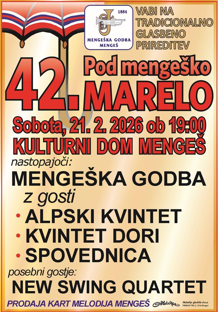 Vstopnice so že na voljo v Melodiji Mengeš. Zagotovite si svojo ter preživite večer kakovostne slovenske narodnozabavne glasbe z odličnimi kvinteti in Mengeško godbo.
