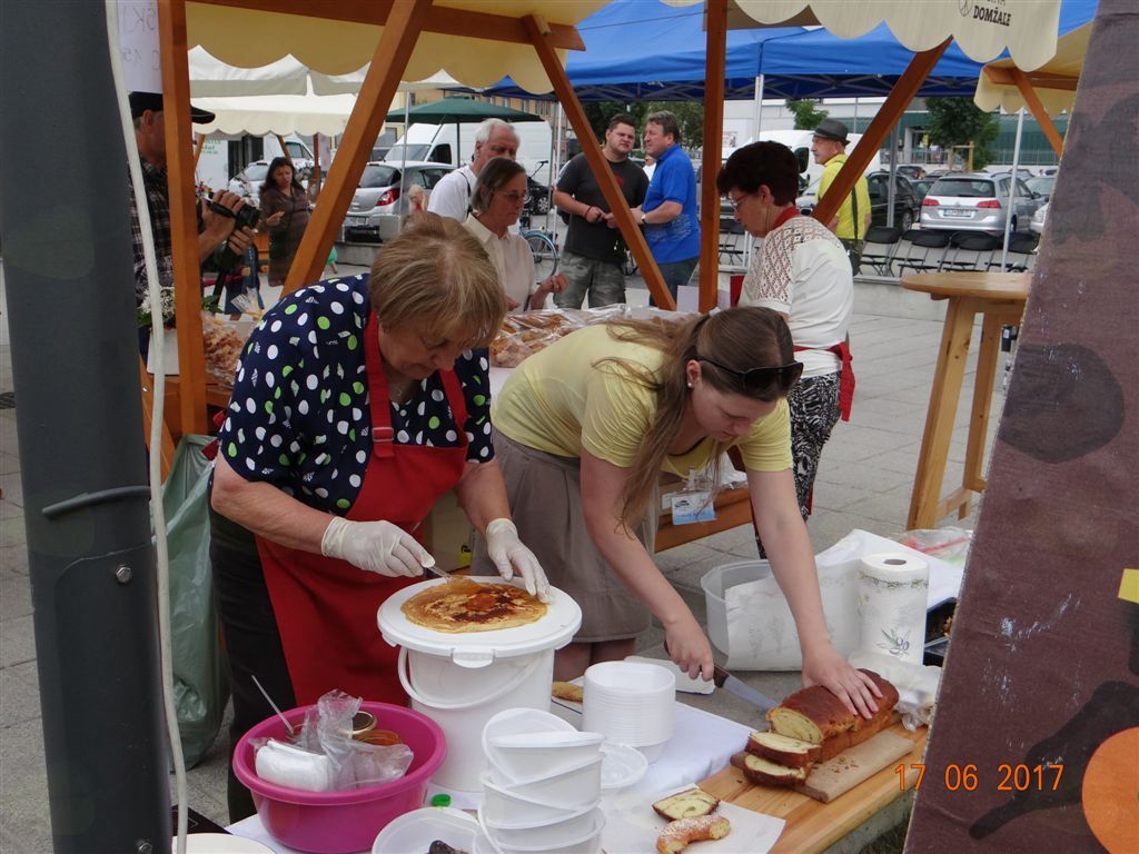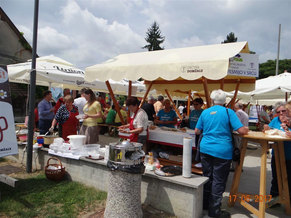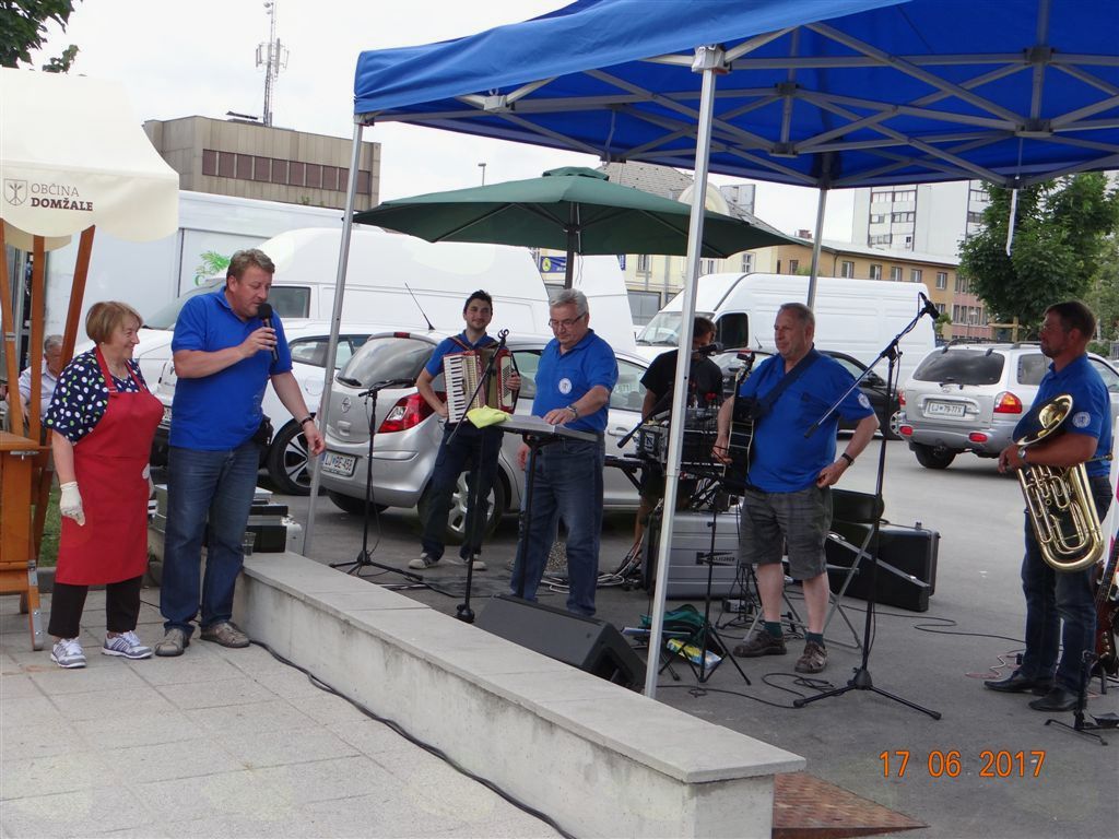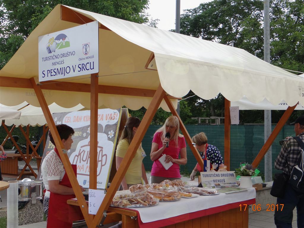 Vabilu društva k sodelovanju so se odzvali: Čebelarstvo Pavrič, Mesnine Merčun, kmetija Per, Slaščičarna Flere, Backove vezilje in trgovina z glasbili Melodija Mengeš. Na stojnici turističnega društva so številnim obiskovalcem tržnice poleg propagandnega materiala in raznih informacij ponudili še sladke dobrote – flancate, pecivo in sveže pečene palačinke. Veliko pozornosti je bil deležen tudi mengeški »bizgec«, stara jed iz časa Janeza Trdine, ki jo Turistično društvo Mengeš skuša čim bolj promovirati v širši slovenski prostor. Da je Mengeš mesto z glasbo in pesmijo v srcu so dokazali veterani Mengeške godbe in ansambel Sejmarji iz KD Mihaelov sejem Mengeš z Marjanom Urbanijo, ki so z igranjem in petjem popestrili sobotno dogajanje na domžalski tržnici.