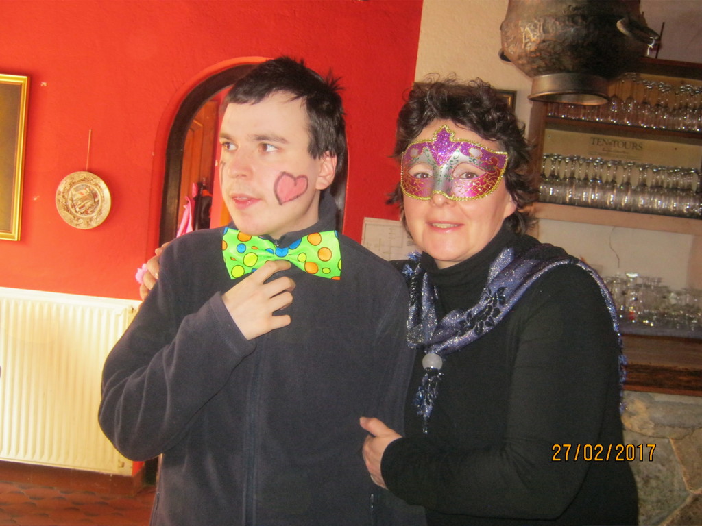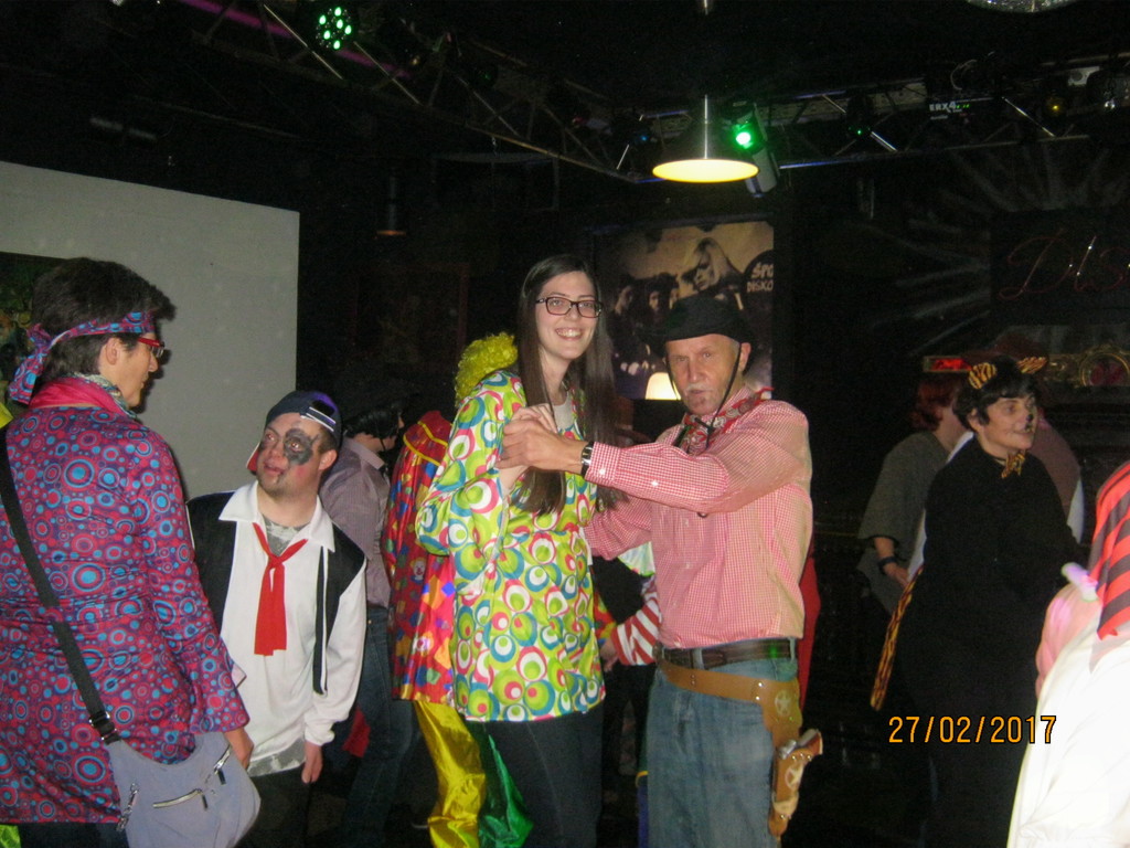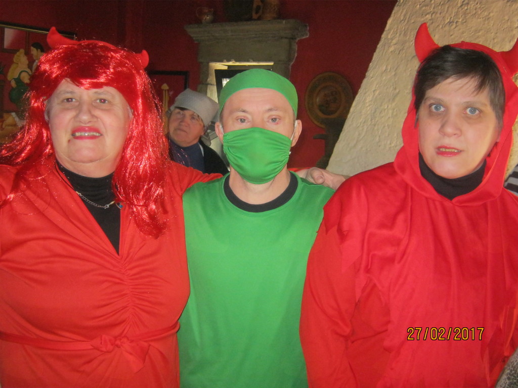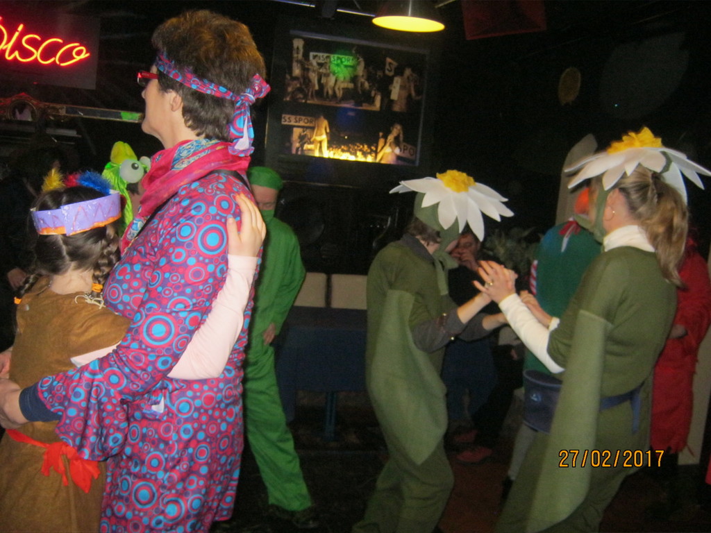 Prijazni gostitelj, g. Ciril Cerar, nam je za rajanje brezplačno odstopil prostore Diskoteke. Vanjo so vstopali kavboji, indijanci, čarovnice, klovni, rožice, kokoške, gusarji..., vsak s svojim stilom in prepričljivo masko. Glasbo je vrtel DJ Tupy, da so maškare lahko veselo rajale in pomagale preganjati zimo iz naših krajev. Pisana druščina se je posladkala s krofi, polnjenimi z marelično marmelado, žejo pa smo si gasili s kokto, fanto, colo in vodo. Seveda so si maškare zaslužile tudi nagrade. Najbolj izvirne smo nagradili z vrečkami kulinaričnih dobrot. Prešerne volje smo preživeli vse popoldne ob prijetnih zvokih in rajali do poznega večera, ko smo rahlo utrujeni, a nasmejanih obrazov odhajali domov.