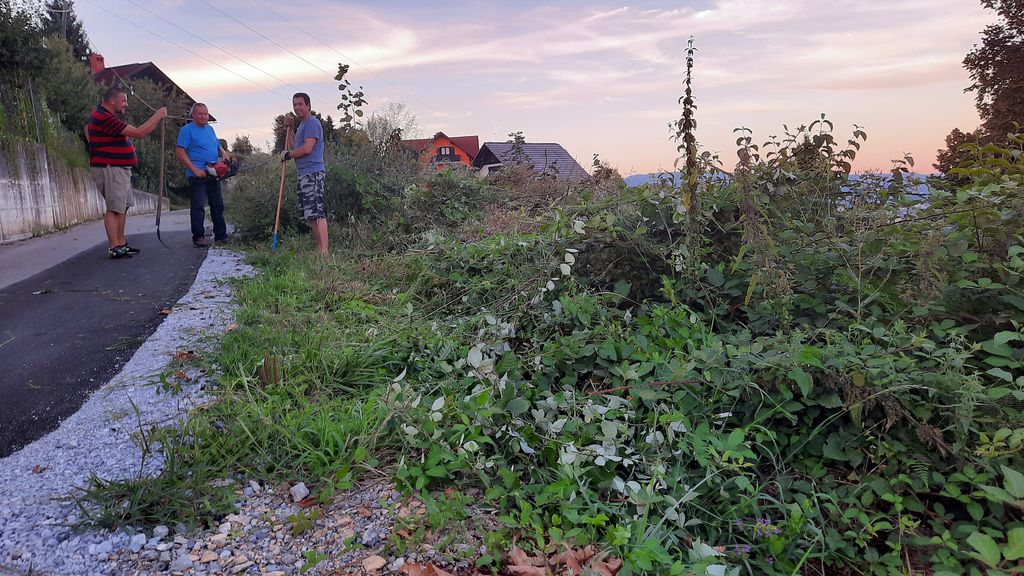 Poletne plohe in nevihte so bile tudi pri nas kar radodarne in so še dodatno prispevale k bujni rasti rastlinja ob cestah v naselju in ker delavcem GGD, ki skrbijo za odstranjevanje vejevja in grmičevja ob cesti, ki ovira varen promet, nikakor ni uspelo priti dlje od KT Blaž, so vaščani in člani VO pod Francetovim vodstvom in s pomočjo njegovega vsestranskega traktorja sami počistili rastlinje, ki je že oviralo varno vožnjo na nekaterih cestnih odsekih.