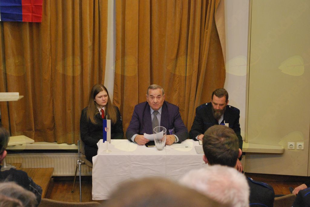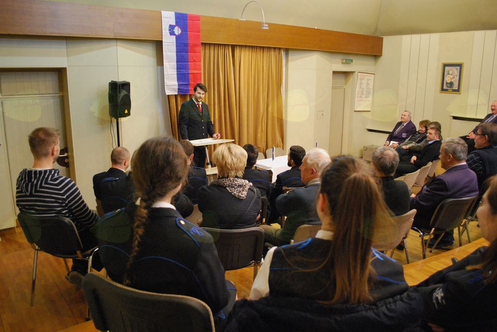 Sledil je tradicionalni pozdrav podžupana g. Ropotarja, gostov ter predstavnikov društev, s katerimi dobro sodelujemo. Za konec pa smo prihranili najboljše, in sicer sprejem novih članov. Letos so iz pripravniških vrst v godbene člane napredovali flavtist Bor Rutar, rogista Tadej Mavčič in Jaka Korenjak, baritonist Jurica Krmić, Teja Komar na saksofonu ter naša pomoč na klaviaturah, ki za nas piše tudi priredbe skladb, ter tolkalist Klemen Juvančič.