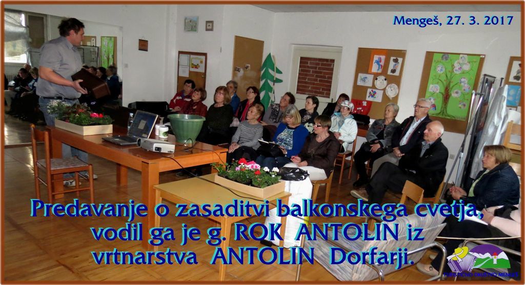7. marca 2017 je Turistično društvo Mengeš, v prostorih bivše papirnice Frema pripravilo predavanje z video projekcijo in praktičnim prikazom zasaditve balkonskega cvetja. Ob tej priliki je predavatelj - znani slovenski vrtnarski mojster g. Rok Antolin vem prisotnim posebej priporočil nakup sadik domačih slovenskih proizvajalcev.
