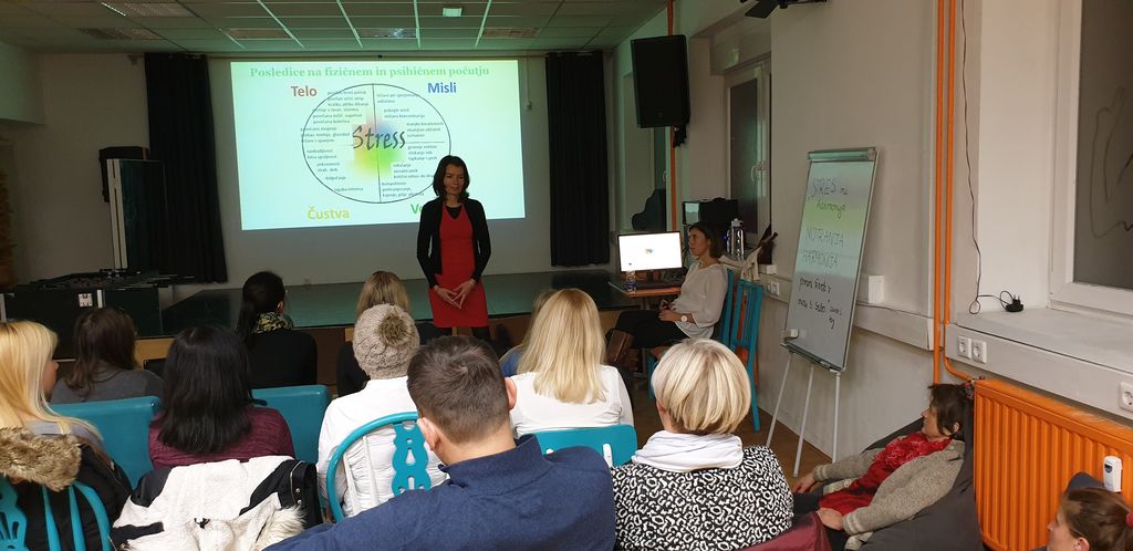 Na predavanju smo spoznali, da stres ni le negativen, ampak je v osnovi pozitiven. Varuje nas v situacijah, pri katerih je potrebno hitro ukrepanje (npr. na cesti odskočiti pred avtom), ohranja našo prožnost, navdušenje, motivacijo in kreativnost pri delu v službi … Predavateljici pa sta poudarili, da moramo biti pozorni, če doživljamo veliko stresorjev hkrati, če ti trajajo dalje časa, in če je naš odziv nanje odklonilen. Predstavili sta tudi, kako se posledice stresa kažejo na štirih ključnih področjih – v telesu, mislih, čustvih in vedenju.