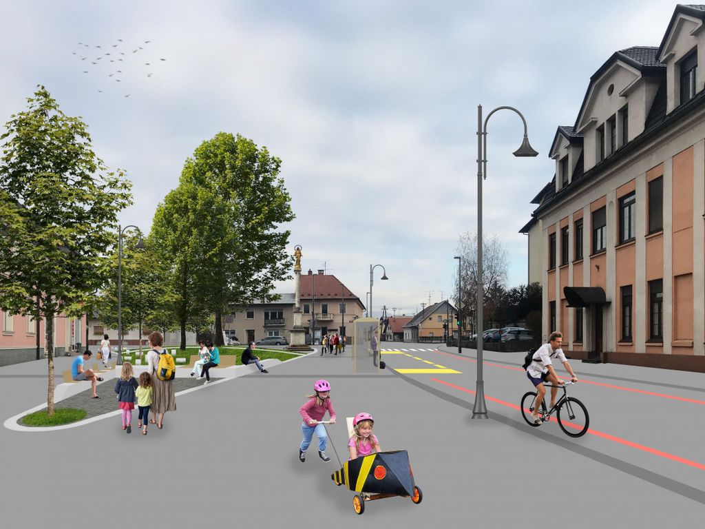 Slovenska cesta se bo uredila kot enotna površina v skupni širini 7 metrov, kar poleg cestišča vključuje tudi površine za pešce in kolesarje. Na območju rekonstrukcije bodo vključena tudi stojala za kolesa, predvidena omejitev hitrosti pa bo 30 km/h. S prenovo ceste je predvidena tudi prenova avtobusnih postajališč, ki so s talnimi oznakami urejena tudi za dostop slepih in slabovidnih. Na Glavnem trgu je načrtovana nova javna površina, ki je oblikovana kot delno ozelenjen, odprt prostor. Za osrednji motiv trga je predvidena prestavitev Marijinega znamenja, ki je v preteklosti že stalo na tem mestu.
