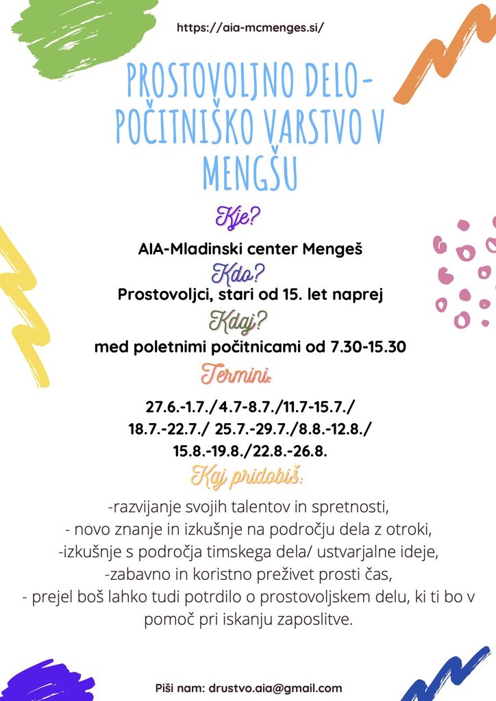 PROSTOVOLJNO DELO – POČITNIŠKO VARSTVO V MENGŠU