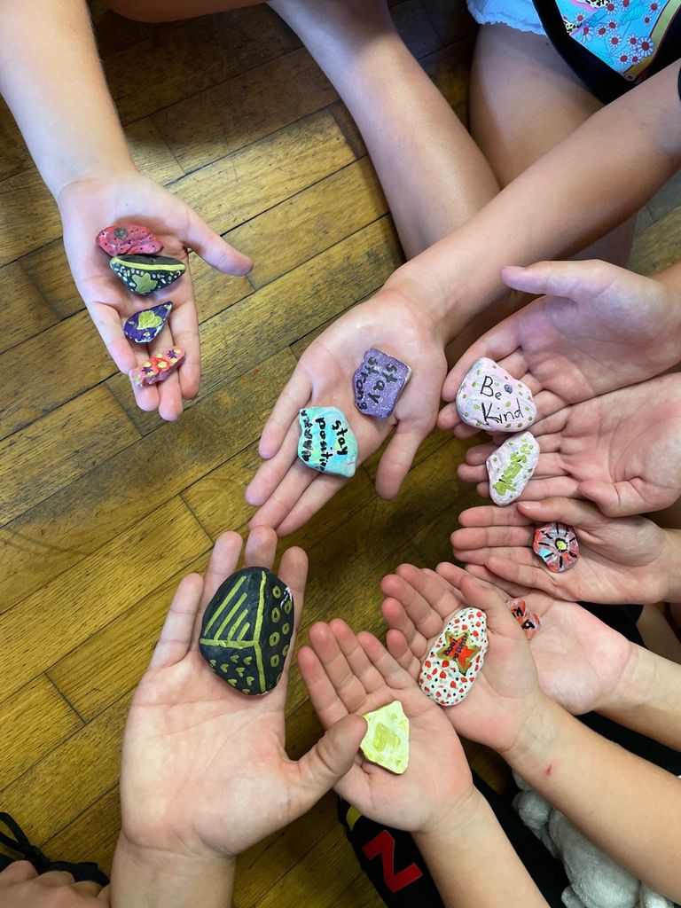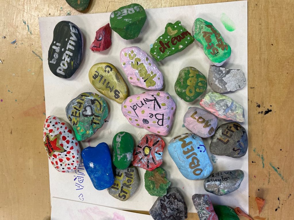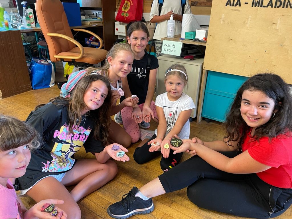 Mladi iz društva AIA pa so na delavnici, ki jo je vodila Sanja Tomšič, na kamenčke napisali pozitivna sporočila za otroke, ki so bili deležni šolskih potrebščin.