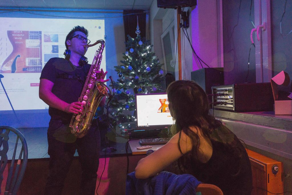 Enaindvajset prostovoljcev se je odzvalo povabilu na zaključno srečanje, ki smo ga že tradicionalno organizirali kar v Mladinskem centru. Po pozdravnem nagovoru, voščilu za leto 2018 in druženju ob odlični hrani, ki jo je pripravil Trdinov hram, smo večer popestrili tudi z različnimi aktivnostmi. Svojo srečo smo preizkusili s tombolo, po igri pa so sledila glasbena darila prostovoljcem: Aljaž Zupan nas je razveselil z odlično vokalno izvedbo skladbe Can't Help Falling Elvisa Presleyja, ki jo je zapel ob spremljavi kitare. Uroš Rangus pa nam je podaril svojo interpretacijo božičnih pesmi, ki jih je spremljal s saksofonom. Po glasbenih poslasticah so prostovoljci preizkusili novo pridobitev, električno rolko. Zabavali smo se tudi z namiznim nogometom, večer pa zaključili  z božičnimi karaokami.