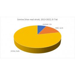 Spodnji grafi prikazujejo število smrtnih žrtev za obdobje 2013-2022 absolutno in v deležu ter hudo telesno poškodovane. Agencija za varnost prometa in Policija vedno znova poudarjata, da je izguba ali huda poškodba otroka v prometni nesreči tragedija, ki je ne bi smela doživeti nobena družina. Zato vse voznike in druge udeležence v prometu ponovno naprošata za strpno udeležbo v prometu z največjo možno mero odgovornosti.