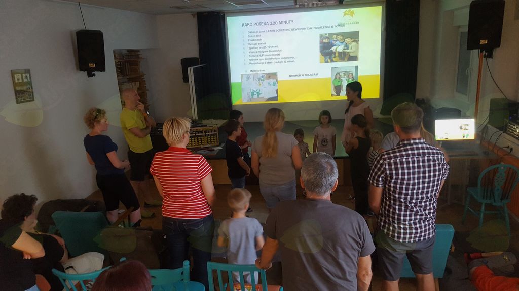 Udeleženci predavanja so podrobneje spoznali program Brainobrain, njegov nastanek, teoretično ozadje, osnove računanja in NLP tehnik ter rezultate programa. Pri Brainobrainu pa nikoli nihče ni zgolj pasiven poslušalec, zato so se vsi prisotni, od predšolskih otrok, do babic in dedkov, preizkusili v pravem »speed testu« ter razgibali svoje telo in možgančke ob gibalnih vajah »Neurobics«, ki spodbujajo delovanje in povezovanje obeh možganskih polovic.