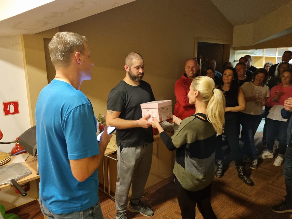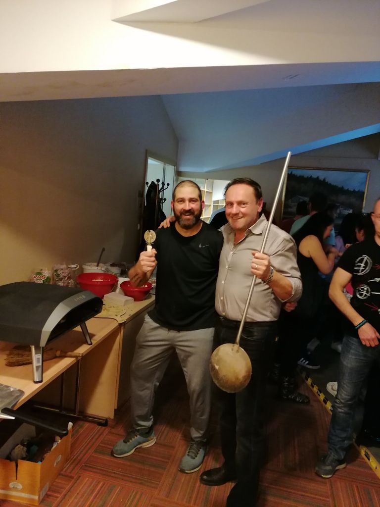 • Maticu Kalimanu, ki je poskrbel, da nismo bili lačni  pripravil je odlično doma pripravljeno testo za pice, jih dobro obložil in nam jih s pomočjo masterchefa Sandija Komlanca tudi spekel;