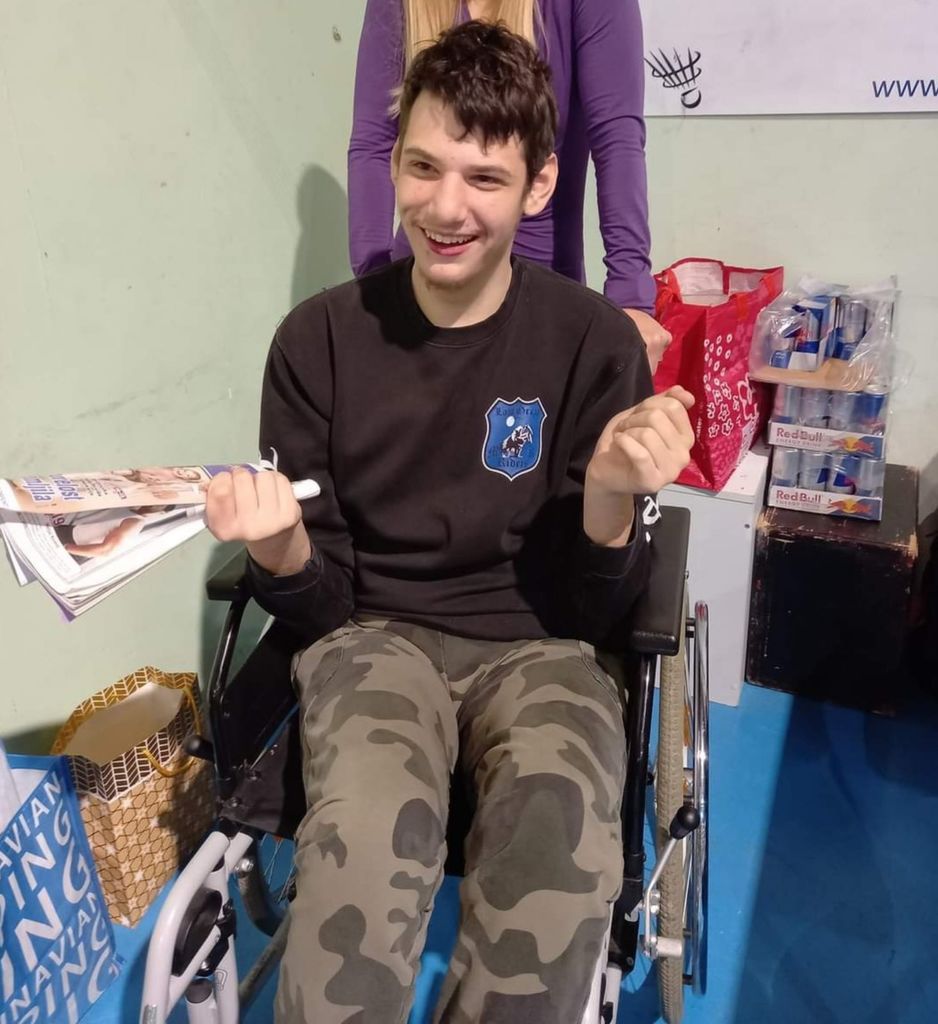 Žan je star 16 let in danes za premikanje uporablja invalidski voziček. Kot pravi mami Metka Kaliman Bolhar, sta nosečnost in porod potekala brez posebnosti. Žal pa so pri 10 mesecih starosti začeli ugotavljati, da se Žan ne razvija tako kot drugi otroci. Po več pregledih so prišli do zaključka, da je Žan oseba, ki ima globalni razvojni zaostanek (uradne diagnoze, zakaj je tako, nima postavljene). Kljub tej diagnozi je v začetku vsaj hodil. Z leti pa mu je tudi sama hoja predstavljala vedno večjo težavo in po operaciji leve noge januarja 2018 (rekonstrukcija stopala) ni več samostojno hodil. Trenutno bi jim zelo prav prišel nakup novega/novejšega rabljenega stopniščnega vzpenjalca, ker je to edini način, da Žana pripeljejo v stanovanje  živijo v prvem nadstropju in selitev zaradi stanovanjskega kredita ni ena od možnih rešitev. Ves čas sta upala, da je to stanje začasno in da bo Žan s pomočjo fizioterapij sčasoma shodil, a žal se to ni zgodilo. In ker je vzpenjalec zelo drag (servisa za obstoječega ne omogočajo več) smo jim mi z veseljem pristopili na pomoč z organizacijo dobrodelnega turnirja.