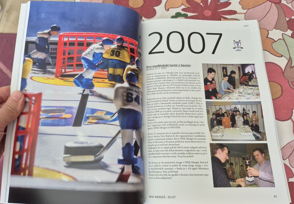 Po več kot letu dni zbiranja in urejanja gradiva je bila knjiga s pomočjo KDFJM pripravljena za tisk. Konec septembra je ugledala luč sveta. Na 188 straneh v A4 formatu je opisanih več kot 230 dogodkov, ki jih krasi čez 400 fotografij. V knjigi lahko med drugim izveste, kdo je glavni "krivec", da je bil v Mengšu ustanovljen prvi namiznohokejski klub v Sloveniji, kdaj in kje je bil odigran prvi turnir v namiznem hokeju v Sloveniji, kdo je tam nastopil in kdo je zmagal in še mnogo več! Vsako leto je prineslo nekaj novega, nekaj zanimivega. Od turnirja v Opatiji s skupino danskih turistov, skrivnostno izginule osebne izkaznice pri prečkanju meje s Hrvaško do nastopov na največjih turnirjih na svetu.