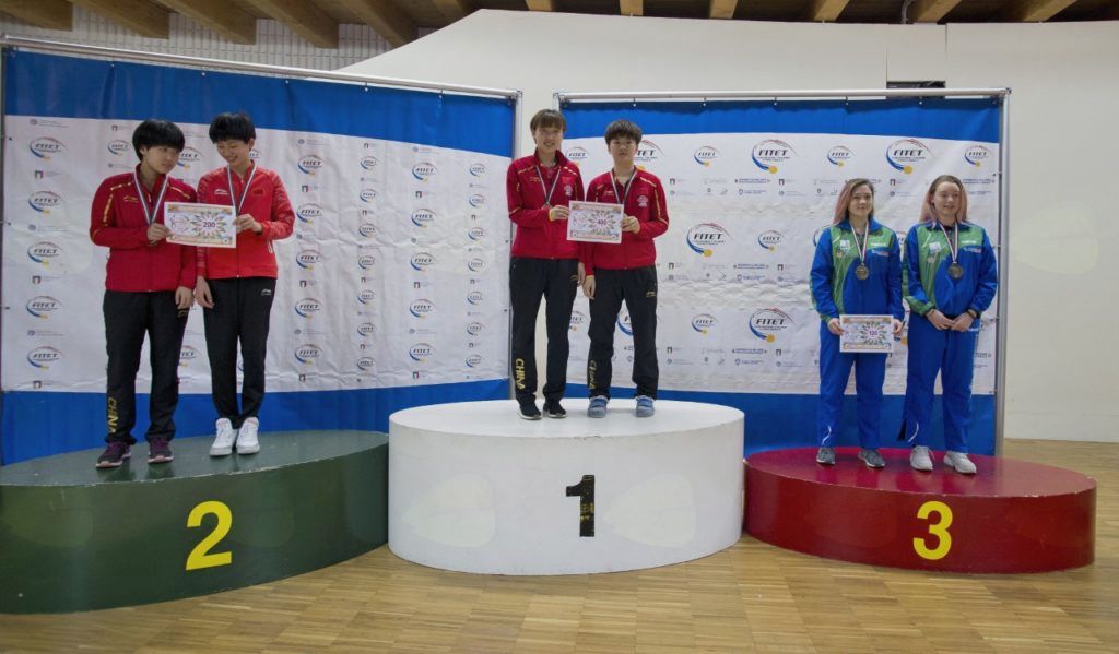 Kot edini Evropejki sta se v polfinale prebili Katarina Stražar in Aleksandra Vovk. V četrtfinalu sta nadigrali prvi nosilki Romunki Dragomanovo in Plainovo. V polfinalu sta se srečali s Kitajkama Yi Chen in Wu Yangchen in v napetem dvoboju izgubili s tesnim rezultatom 2 : 3.