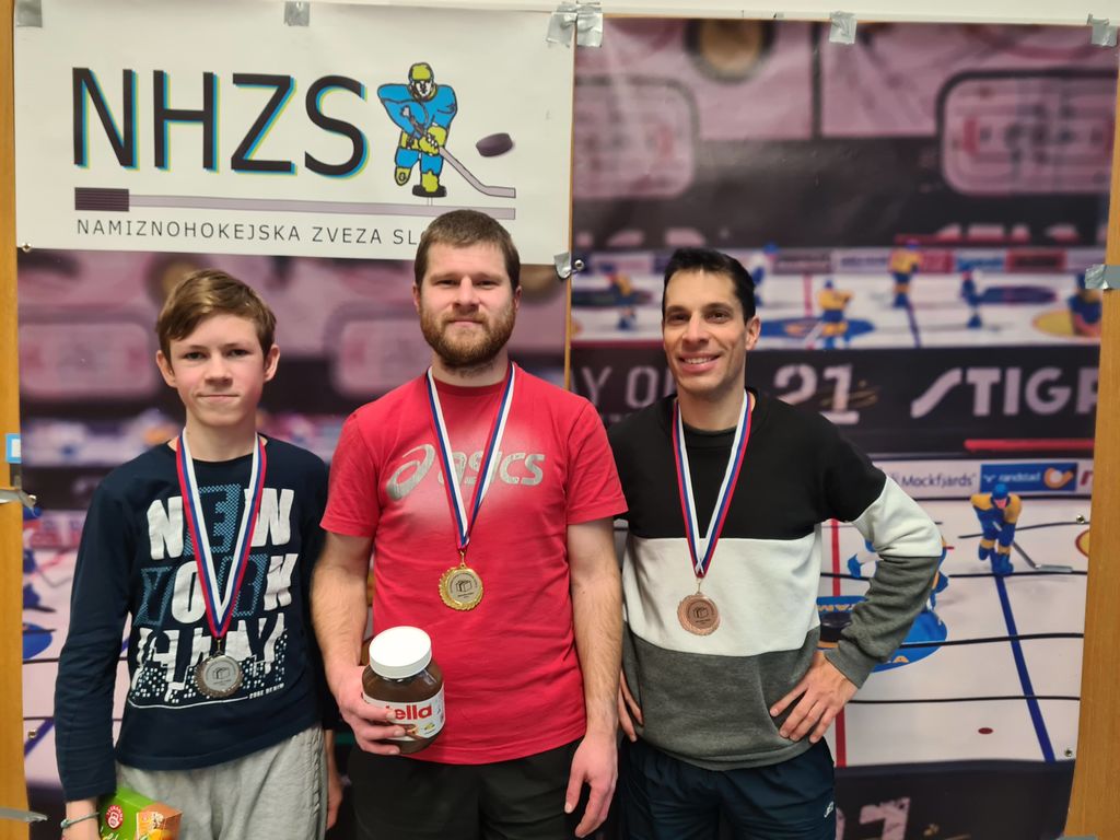 Zadnji turnir v namiznem hokeju v koledarskem letu 2023 je bil odigran 9. decembra v Mengšu. Zbralo se je 20 tekmovalcev, blestel pa je najvišje rangirani Slovenec Anže Božič, ki mu je kot prvemu v zgodovini uspelo turnir končati brez izgubljene točke. Slavil je na vseh 24 tekmah. V finalu je ugnal Gala Bohinca, za katerega je bila to nasploh prva uvrstitev v finale turnirja za Slovenski pokal. Tretji je bil Bernard Rjavec, vsi NHK Kranj, takoj za njim pa najboljši domači igralec Miha Škrlep. Miha je prišel med najboljše štiri po presenetljivi zmagi nad Jakobom Zalokarjem Obadičem v četrtfinalu. Jakob je kar 200 mest višje na svetovni lestvici!