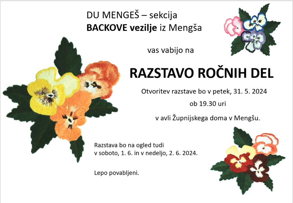 DU Mengeš – sekcija Backove vezilje vabijo na razstavo ročnih del.